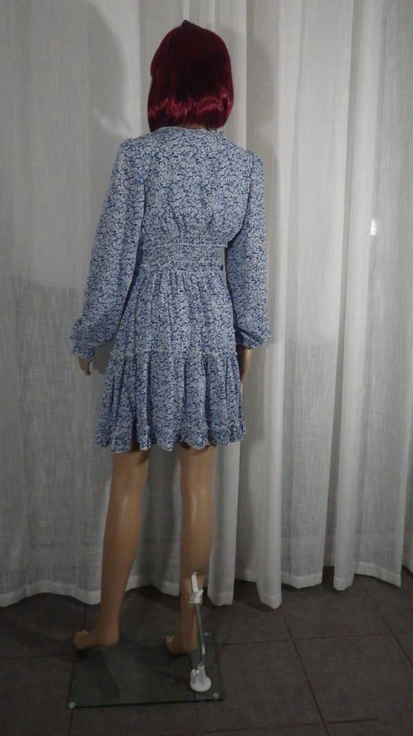Couleur Bleu ciel smocke taille légèrement évasée, robe courte