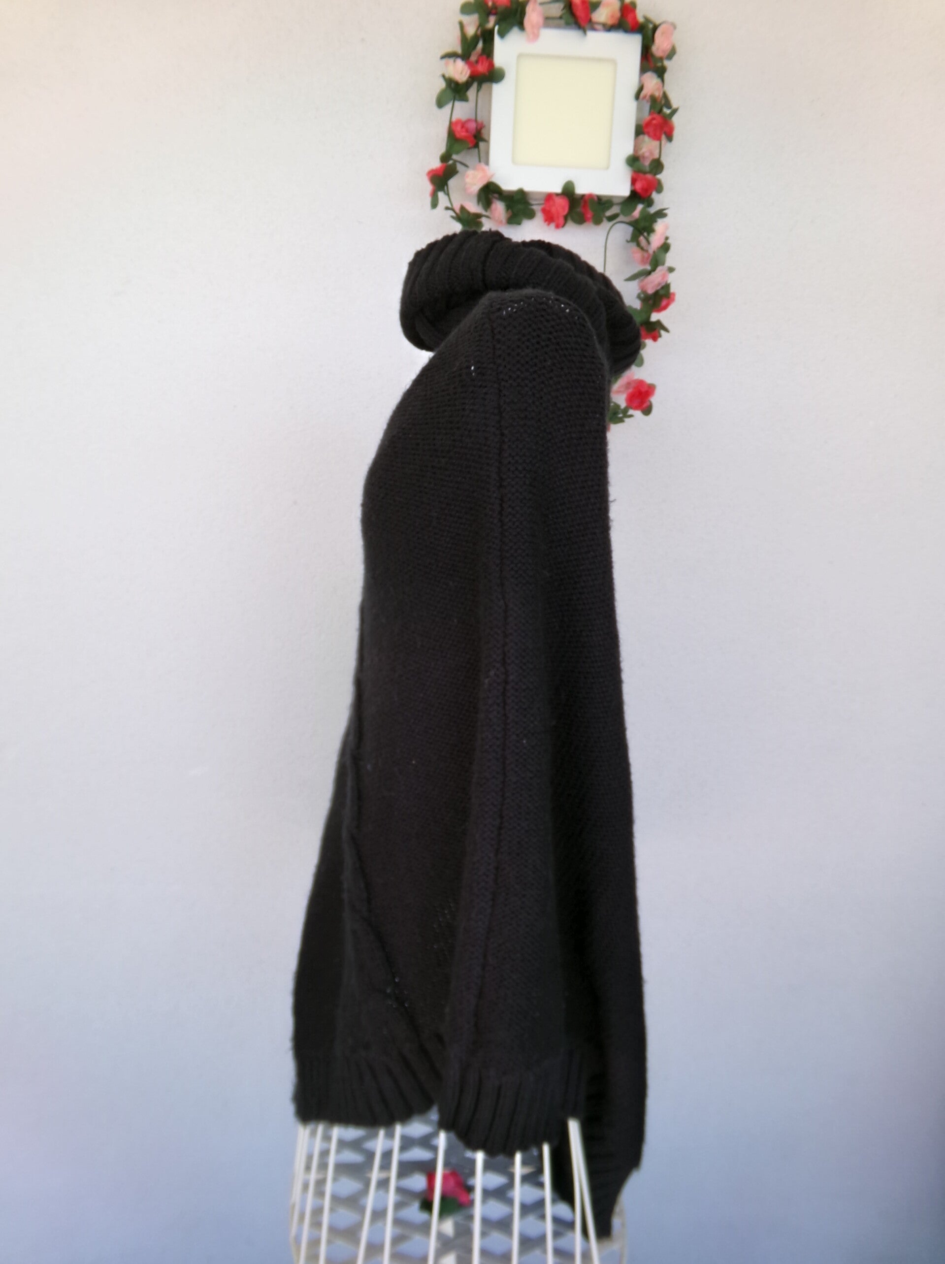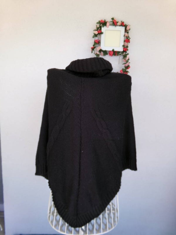 Pancho Noir Simple avec col montant, simple et original à la fois