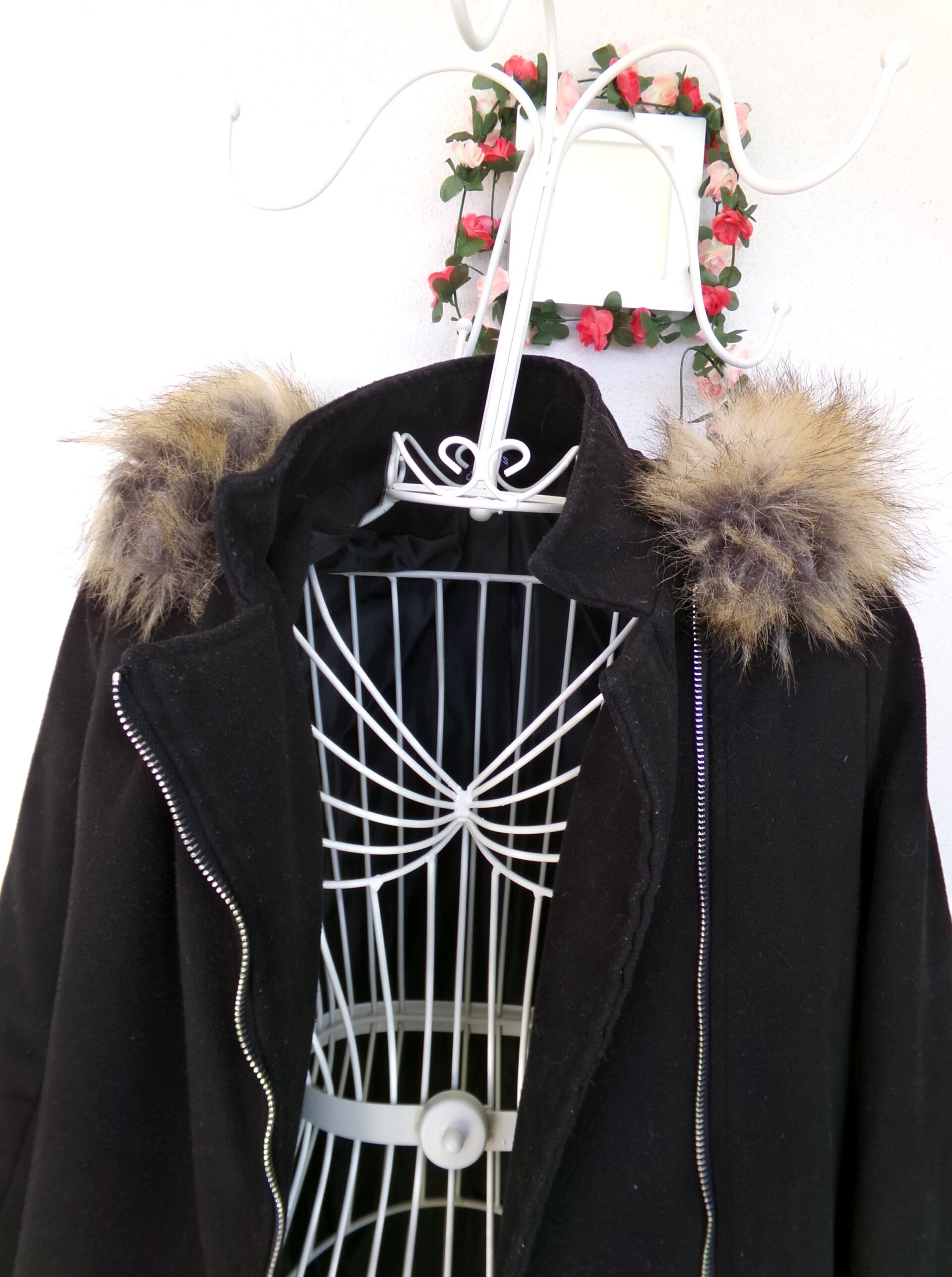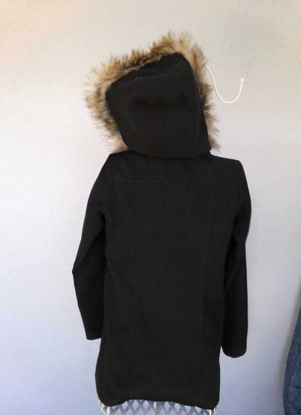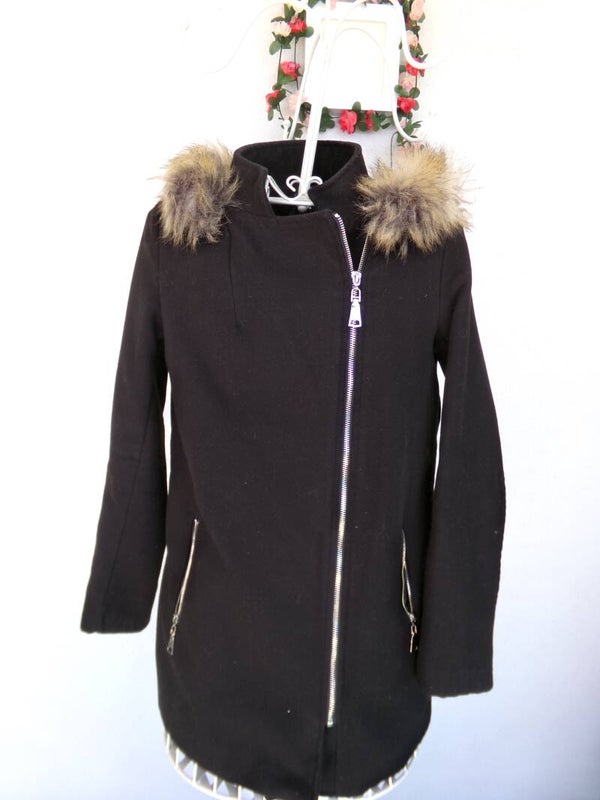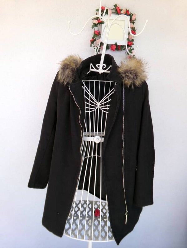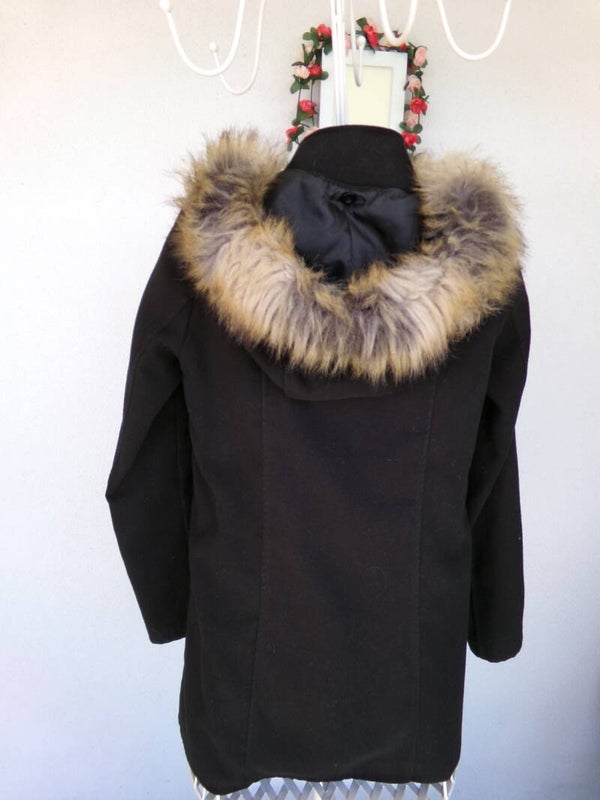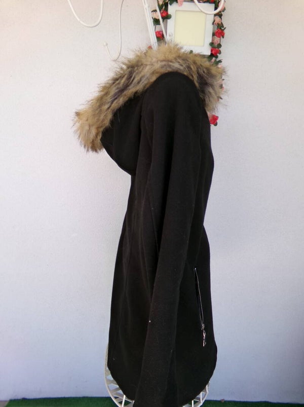 Manteau Tissus Noir avec capuche moumoute CLOOTHES Taille M