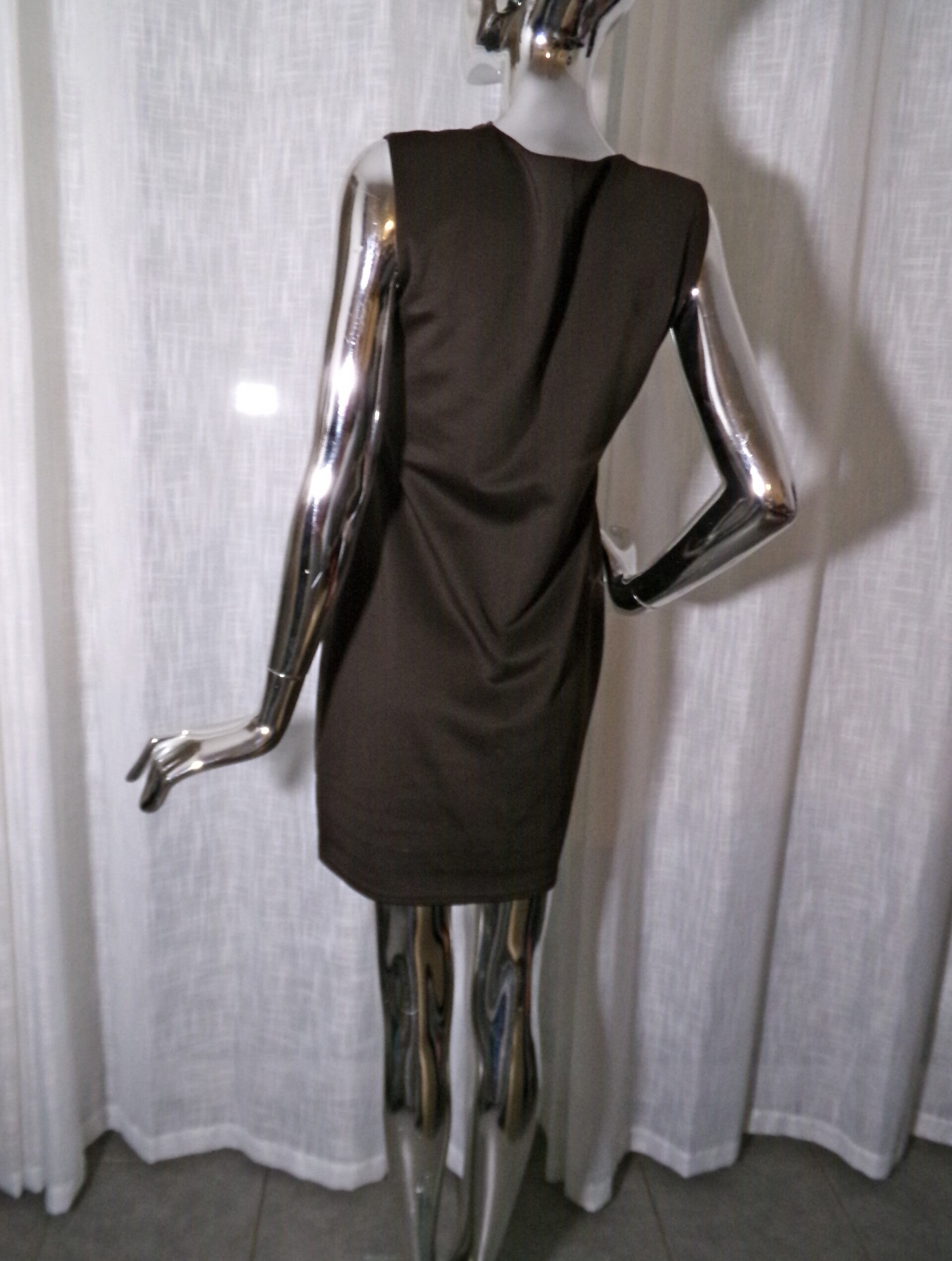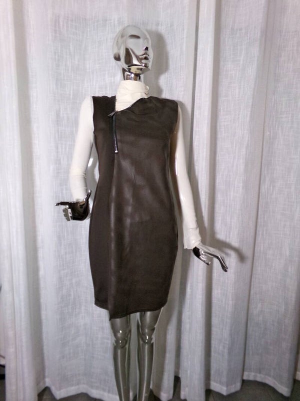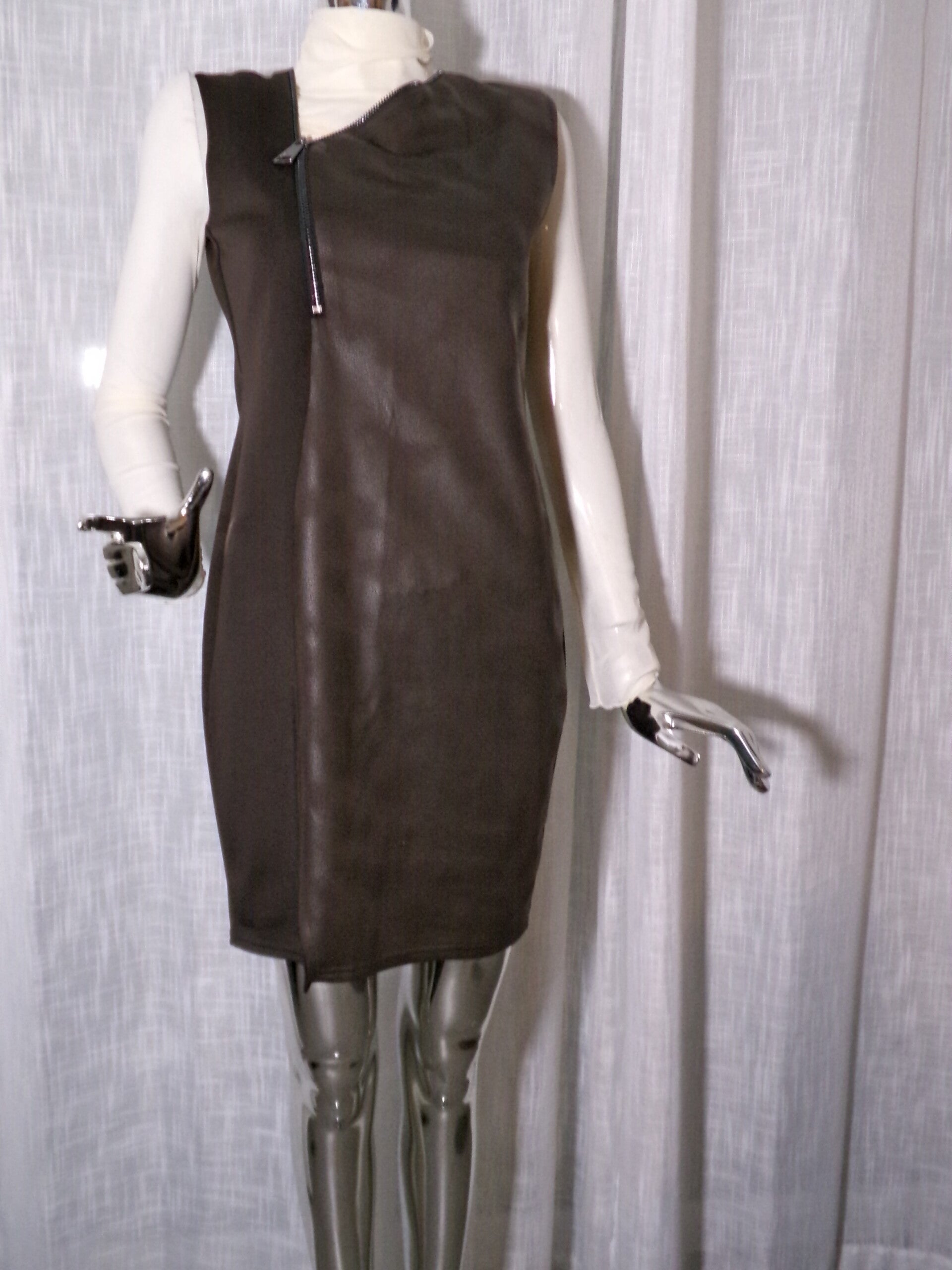 Robe Marron derrière matière tissus extensible, devant simpili cuir avec petite fermeture