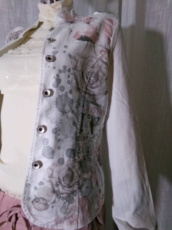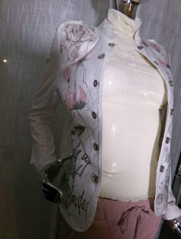 Veste rose et blanc à motifs géniaux, très originale, stylée et branchée