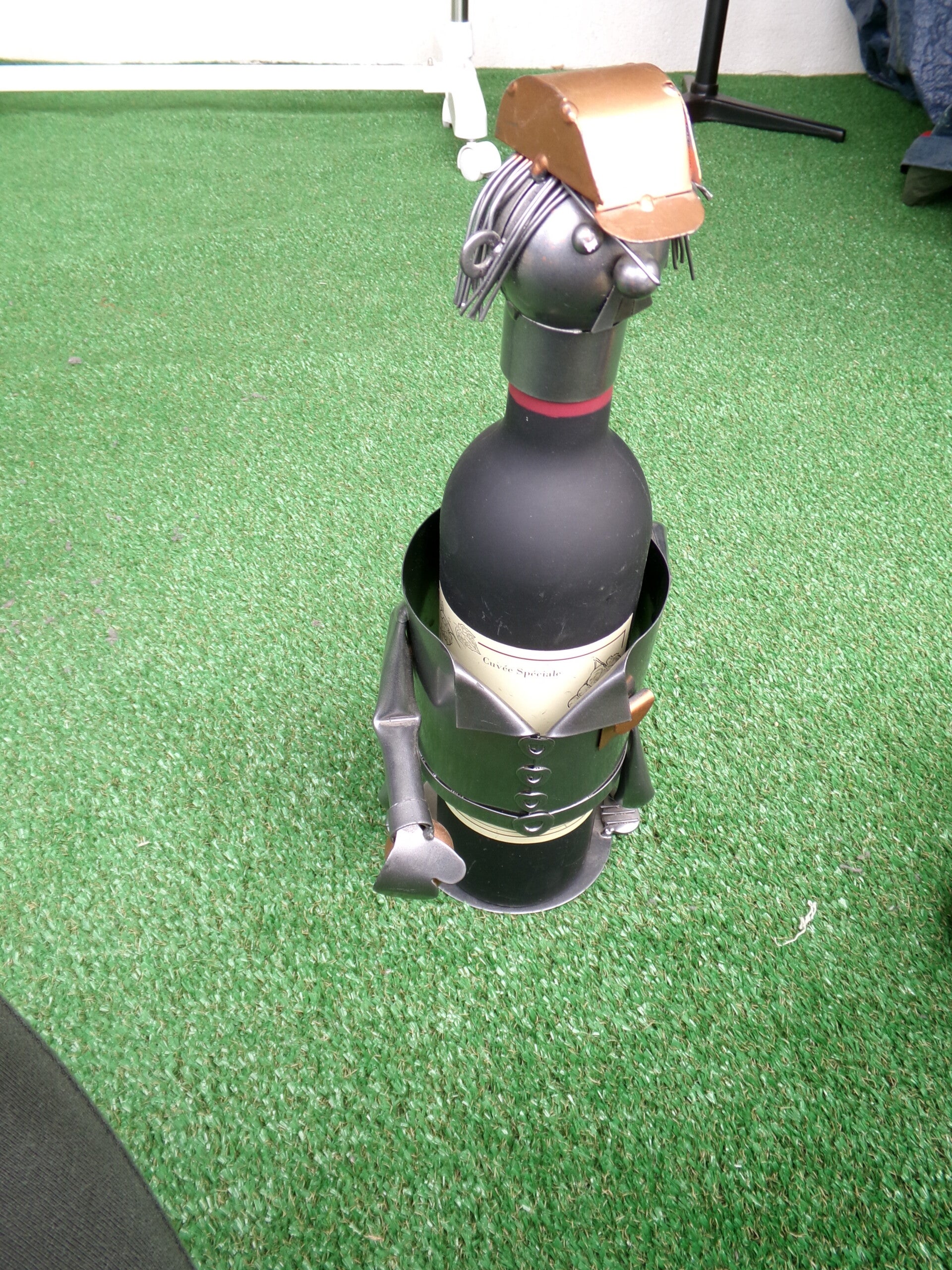 Vous ne manquerez pas cette belle bouteille et son support rigolo !
