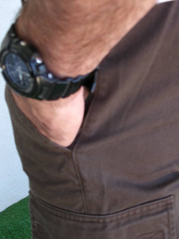Pantalon Marron Fermeture bouton et fermeture éclair et élastique sur chacun des deux côtés gauche et droite