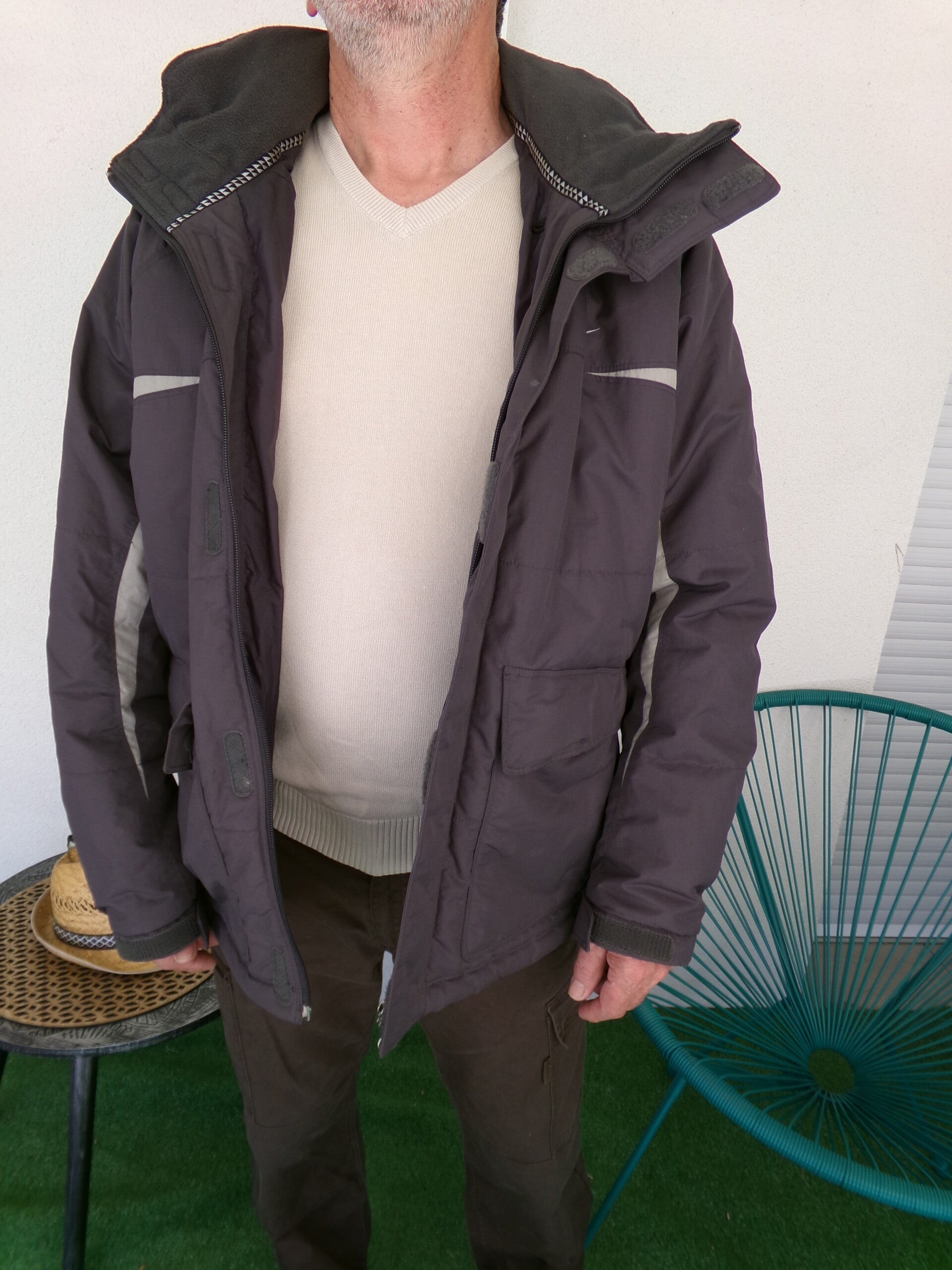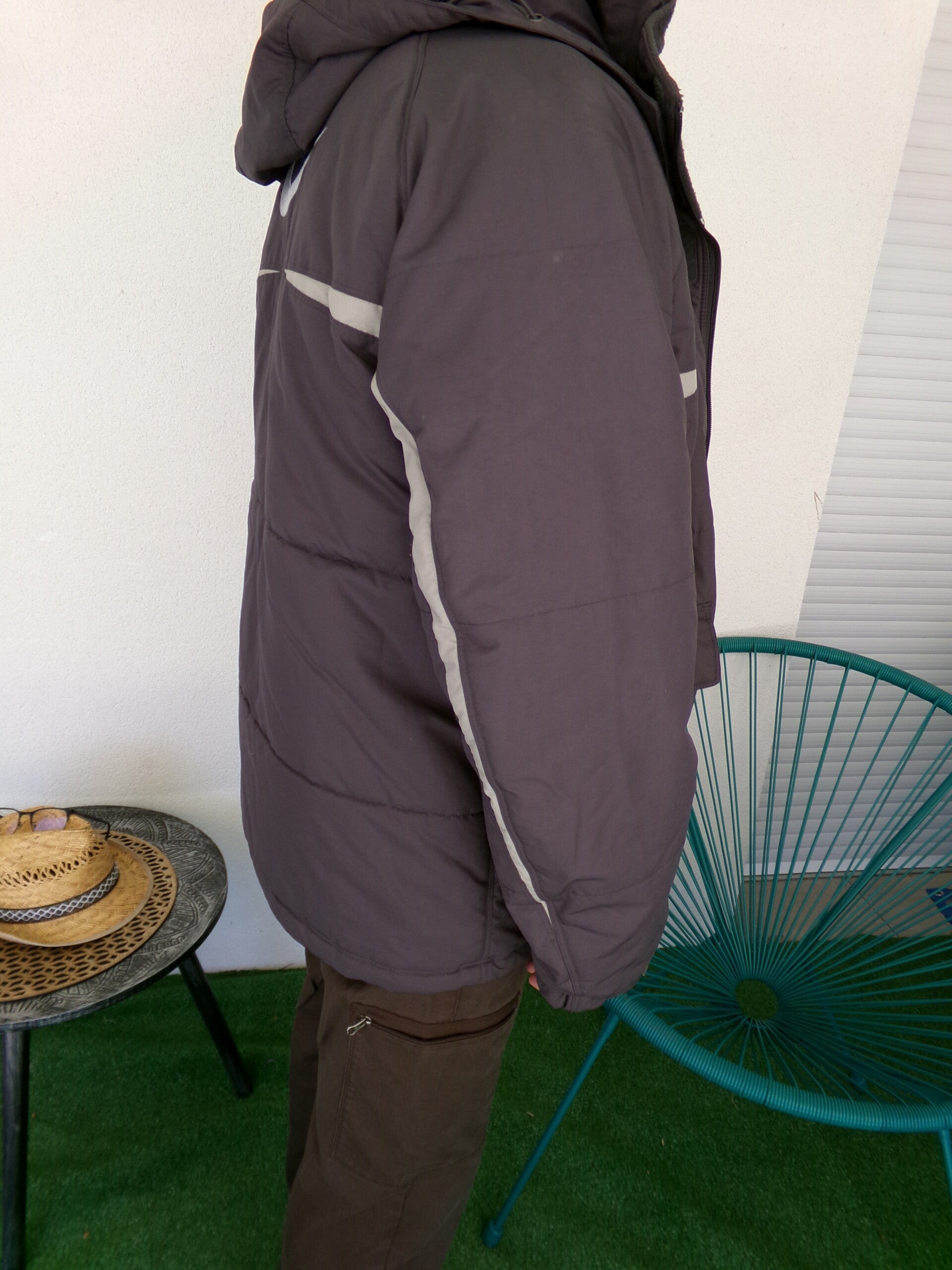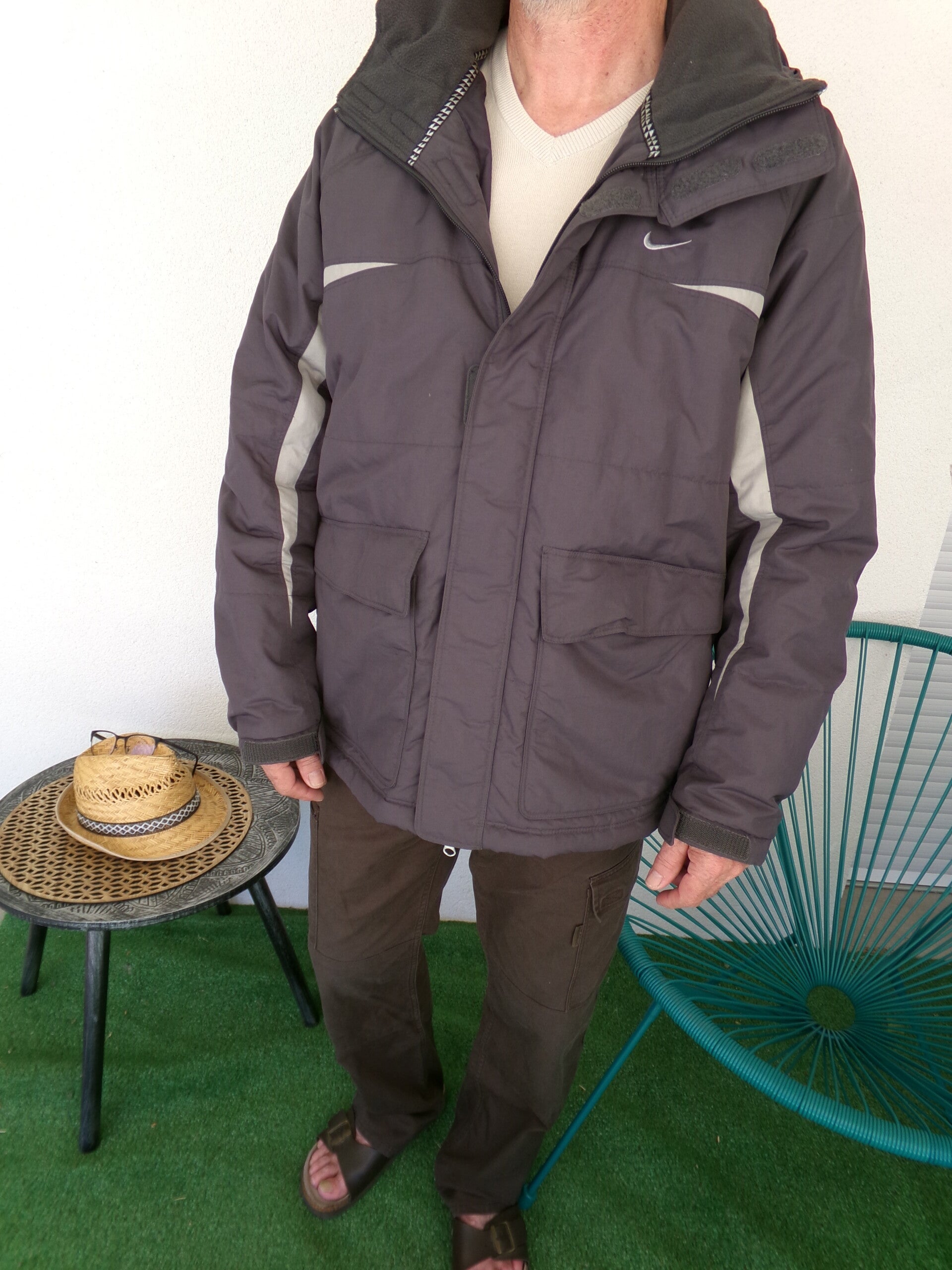 Blouson NIKE Gris Souris orné de gris clair, imperméable, très confortable, avec capuche, poches très bien adaptées, intérieur, extérieur.