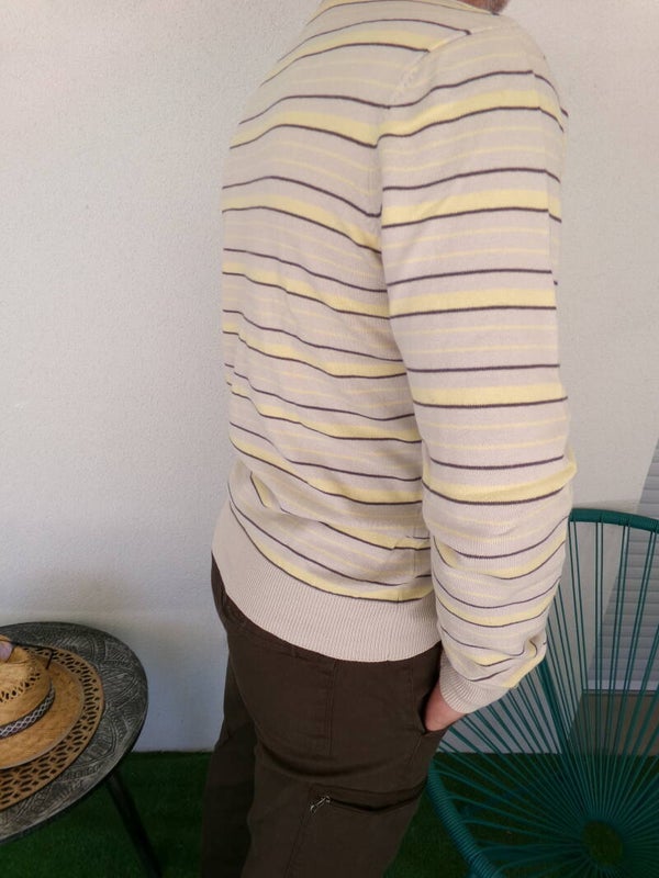 Pull Col en V Couleur à ligne Jaune Beige JULES Taille M