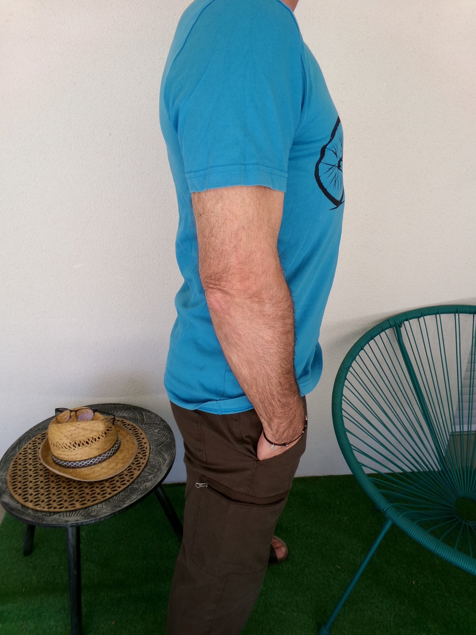 Tee Shirt Bleu Turquoise avec motif noir Taille M