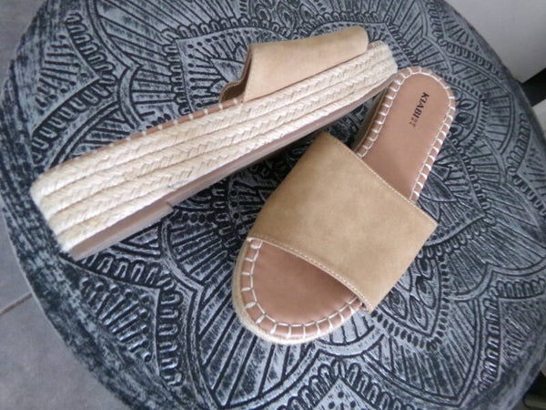 Claquettes semelles cordes hautes cuir beige Taille 37