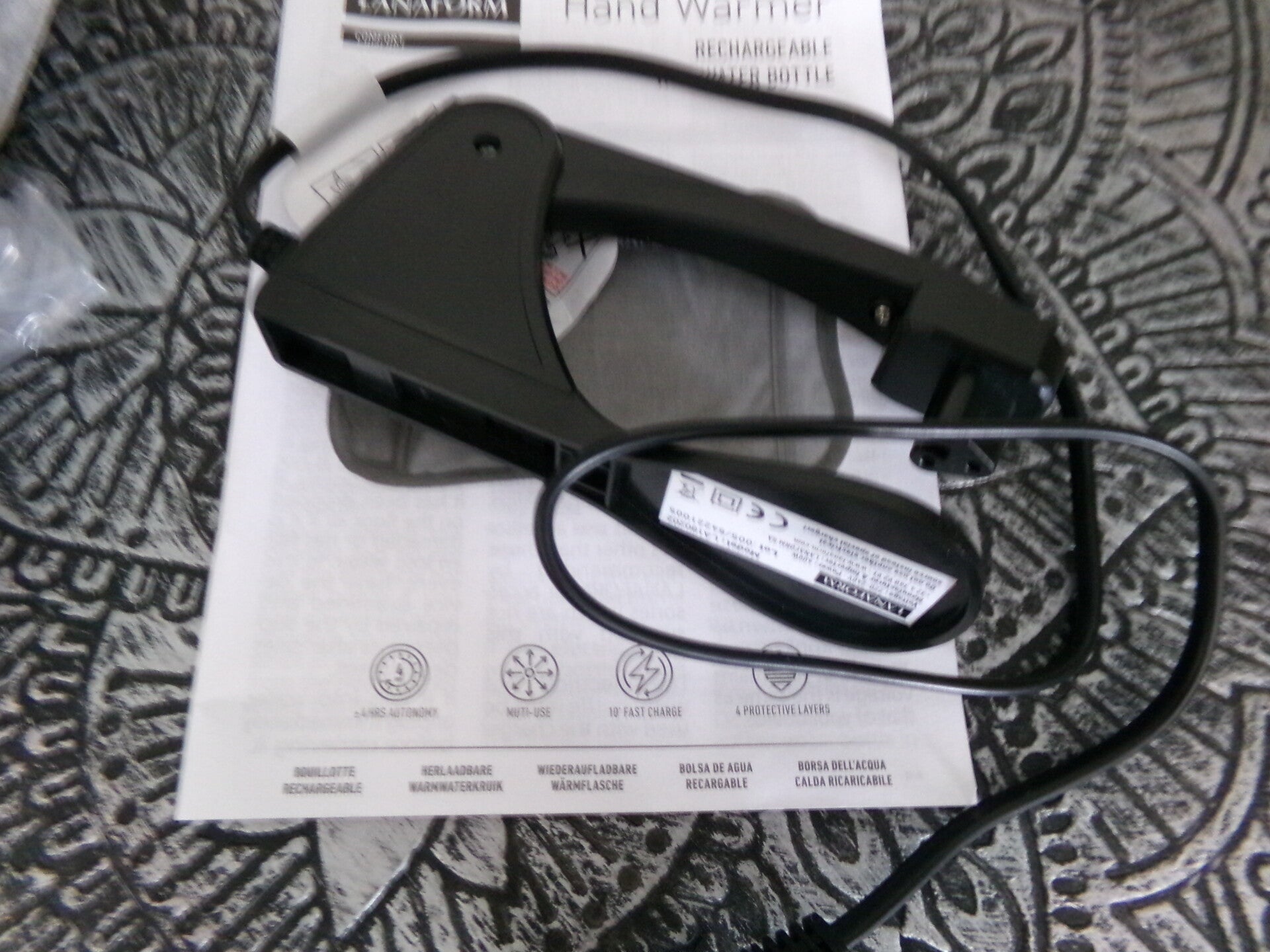 Chauffe mains, se recharge par pinces au secteur, et ensuite reste plus de 5 heures en chauffe, plusieurs températures au choix !