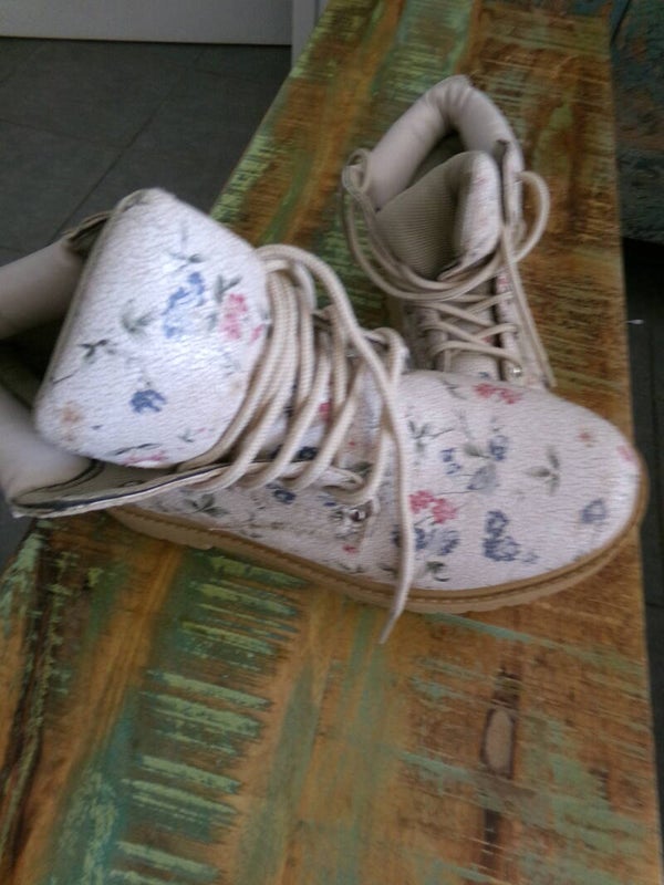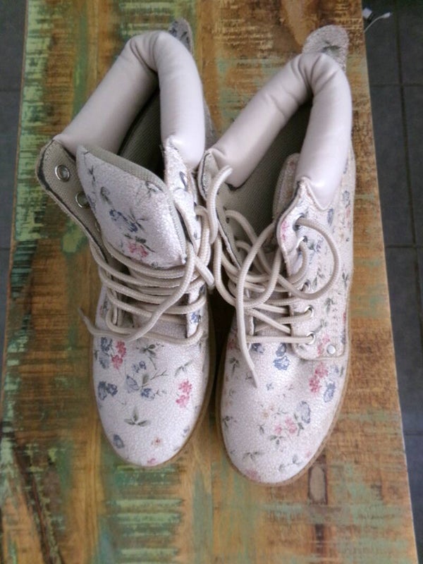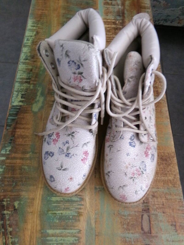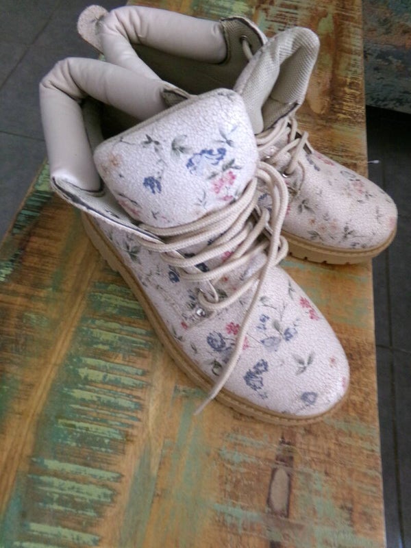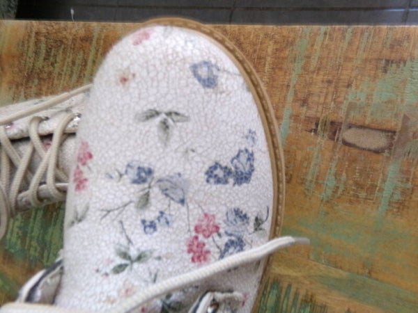 Bottines à lacet à motifs floraux originaux beige et rose-bleu ciel