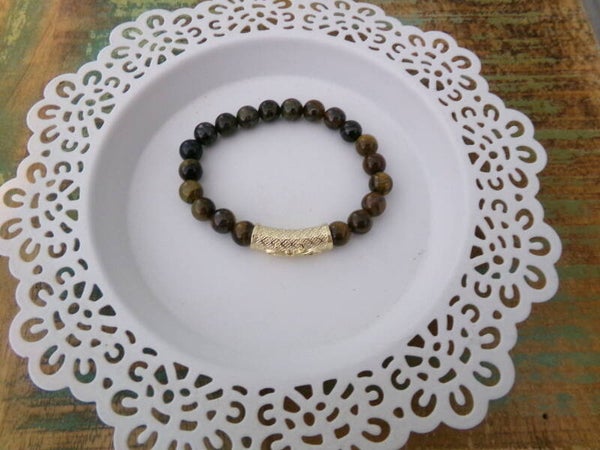 Bracelet Haute Protection Courage Force Oeil du Tigre orné or HOMME