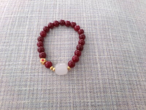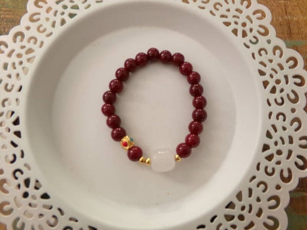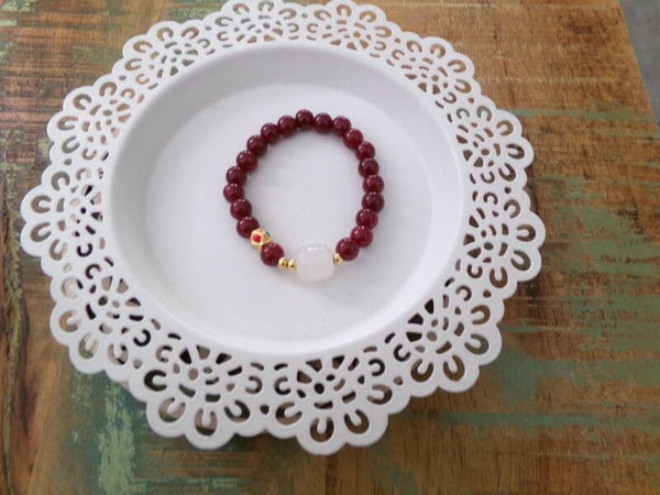 Bracelet Jaspe Rouge avec ornement or et quartz blanc, Magnifique Porte-Bonheur, Chance, Vitalité.