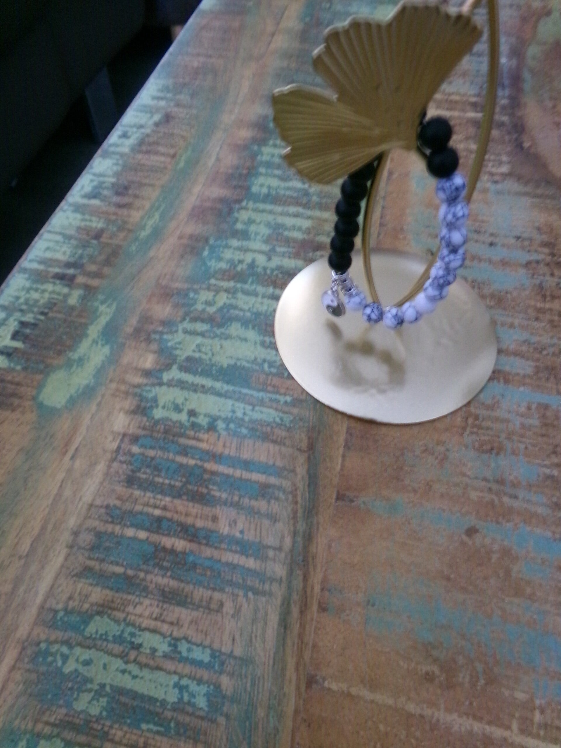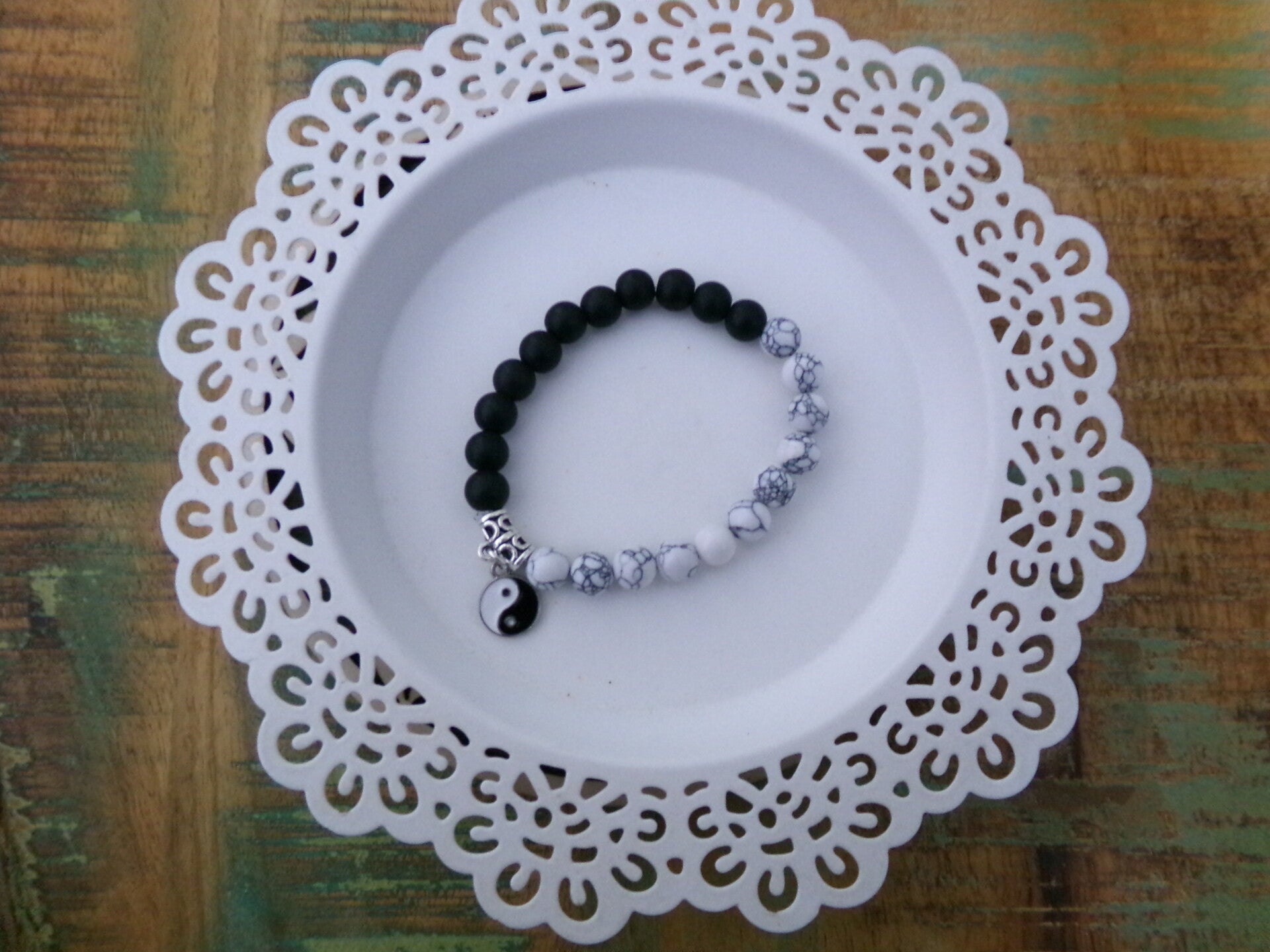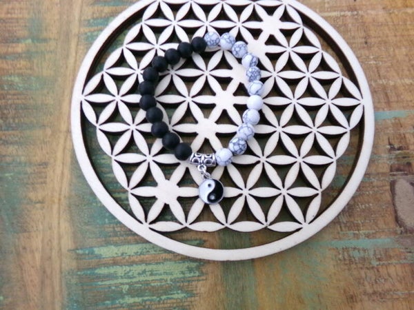 Bracelet en Onyx noir mat, et Howlité, Sérénité Absolue avec charms zénitude !