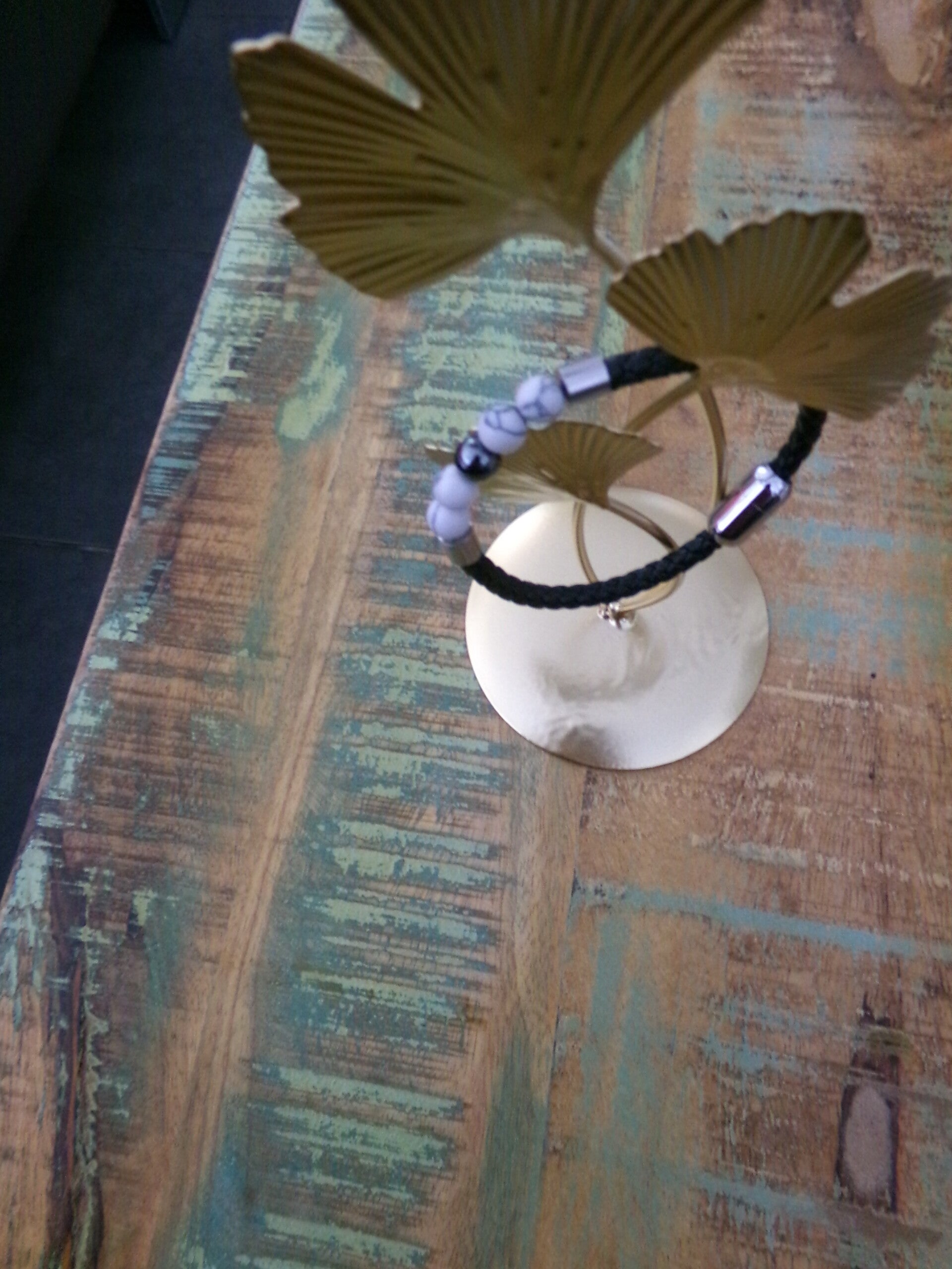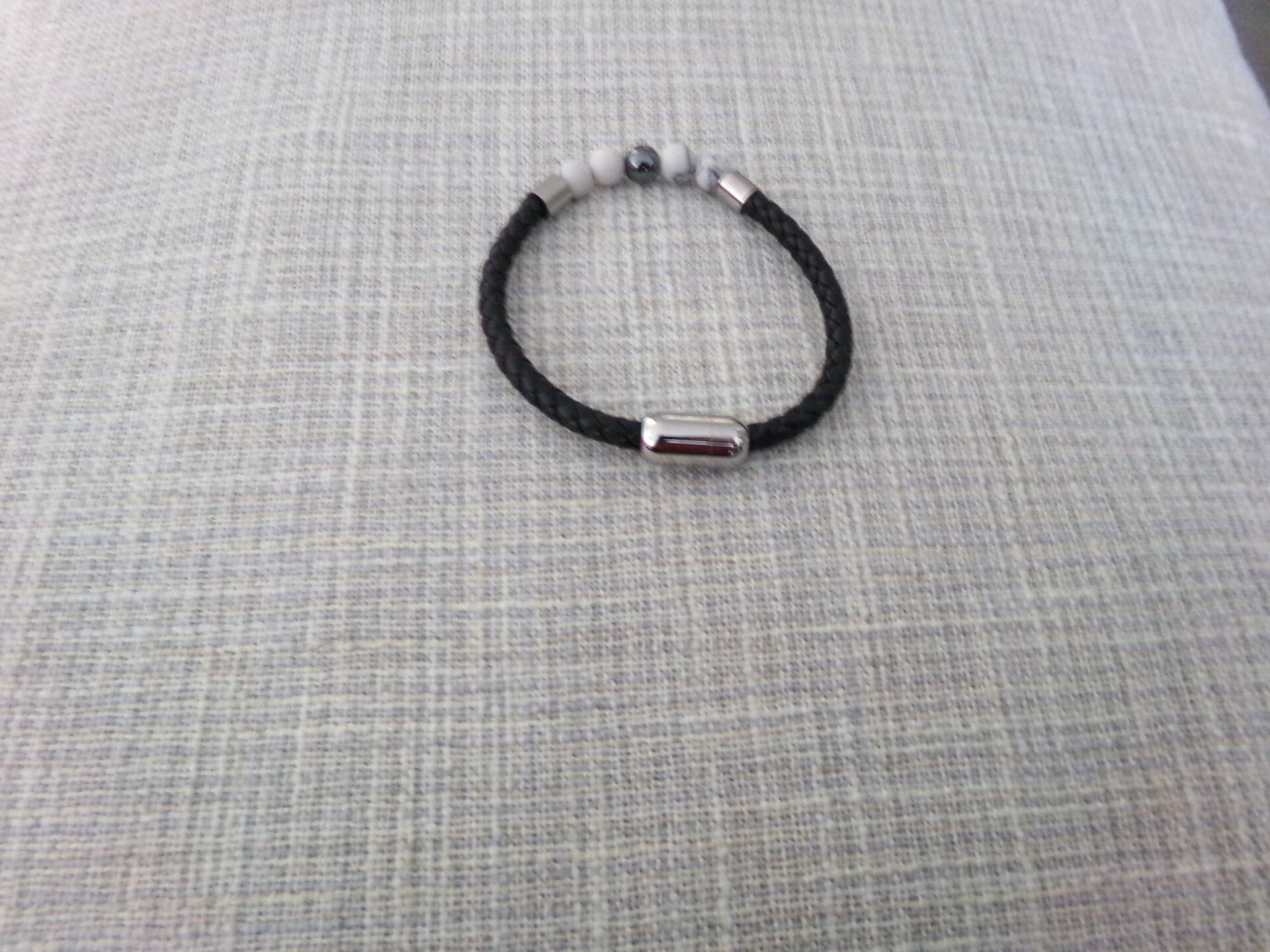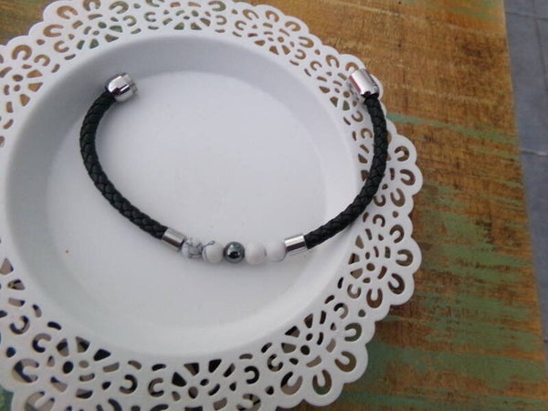 Bracelet fermeture magnétique corde solide noir Howlite Hématite HOMME