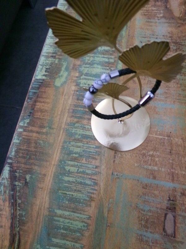 Bracelet Howlite fermeture magnétique, bracelet en corde solide et pierres Howlite et une Hématite.