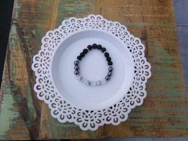 Bracelet Pierre de Lave Hématite Howlite Obsidienne Quartz blanc MIXTE