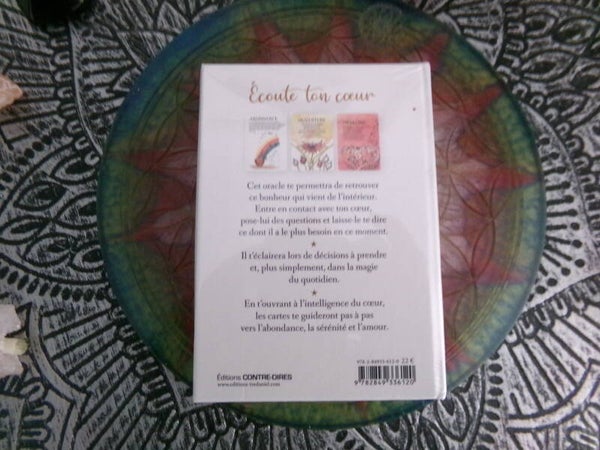 Cartes à message, Bonheur intérieur, Boite émantée, avec livret, plusieurs méthodes de tirage pour débutant et professionnel, tranche métallique rose fushia contour des cartes,