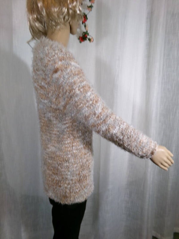 Pull moumouté dans les tons marron, très joli, léger, toutes saisons.