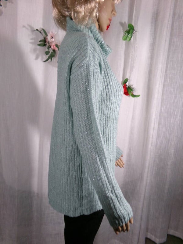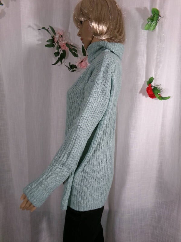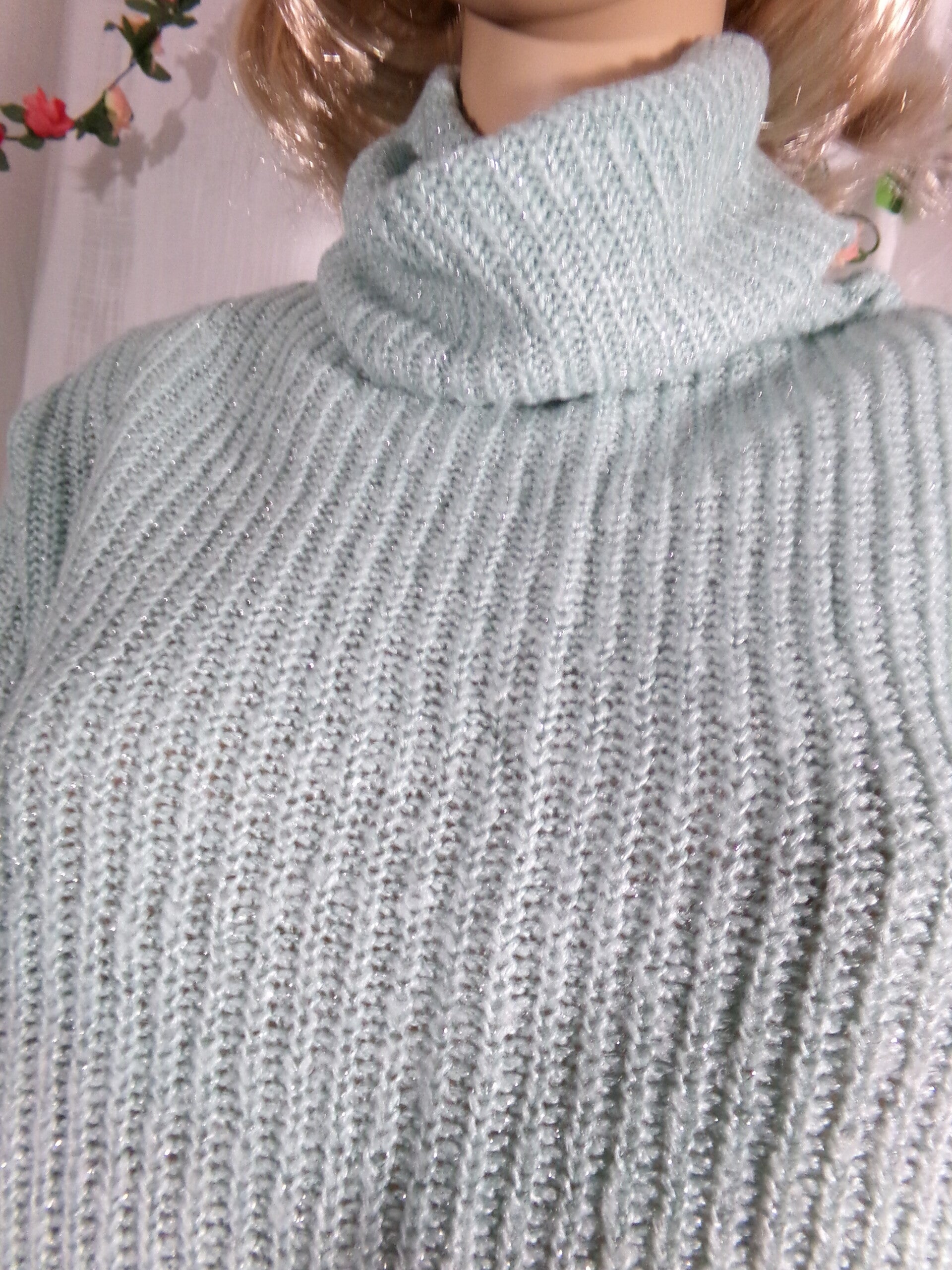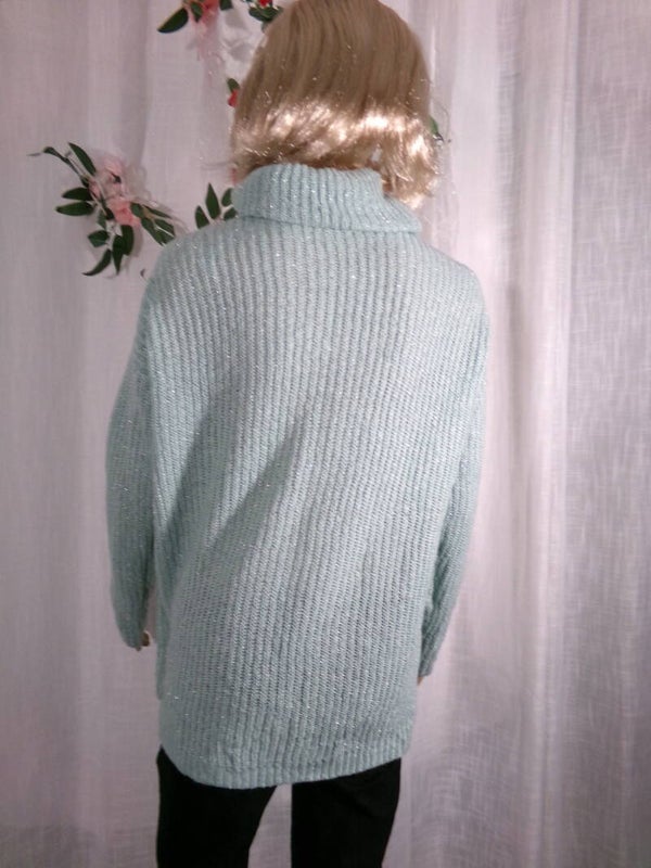 Pull Col Roulé, Léger, Vert d'Eau avec paillettes argent.
