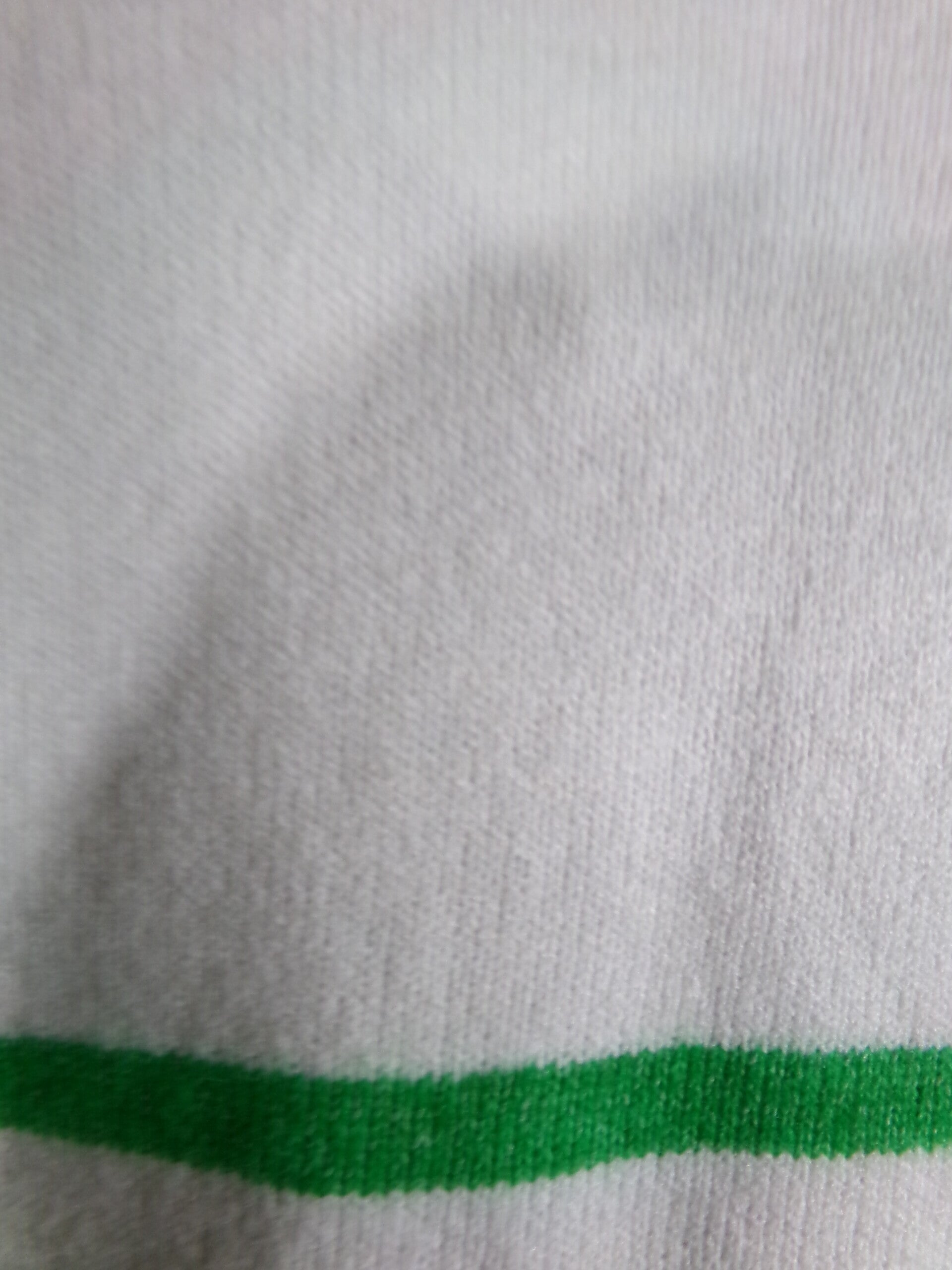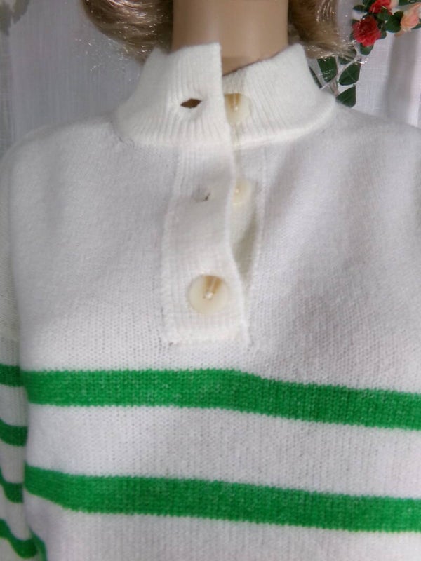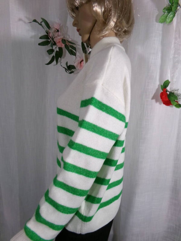 Pull Doux, léger, Blanc à lignes vert Flashi, très joli, fermeture par boutons !
