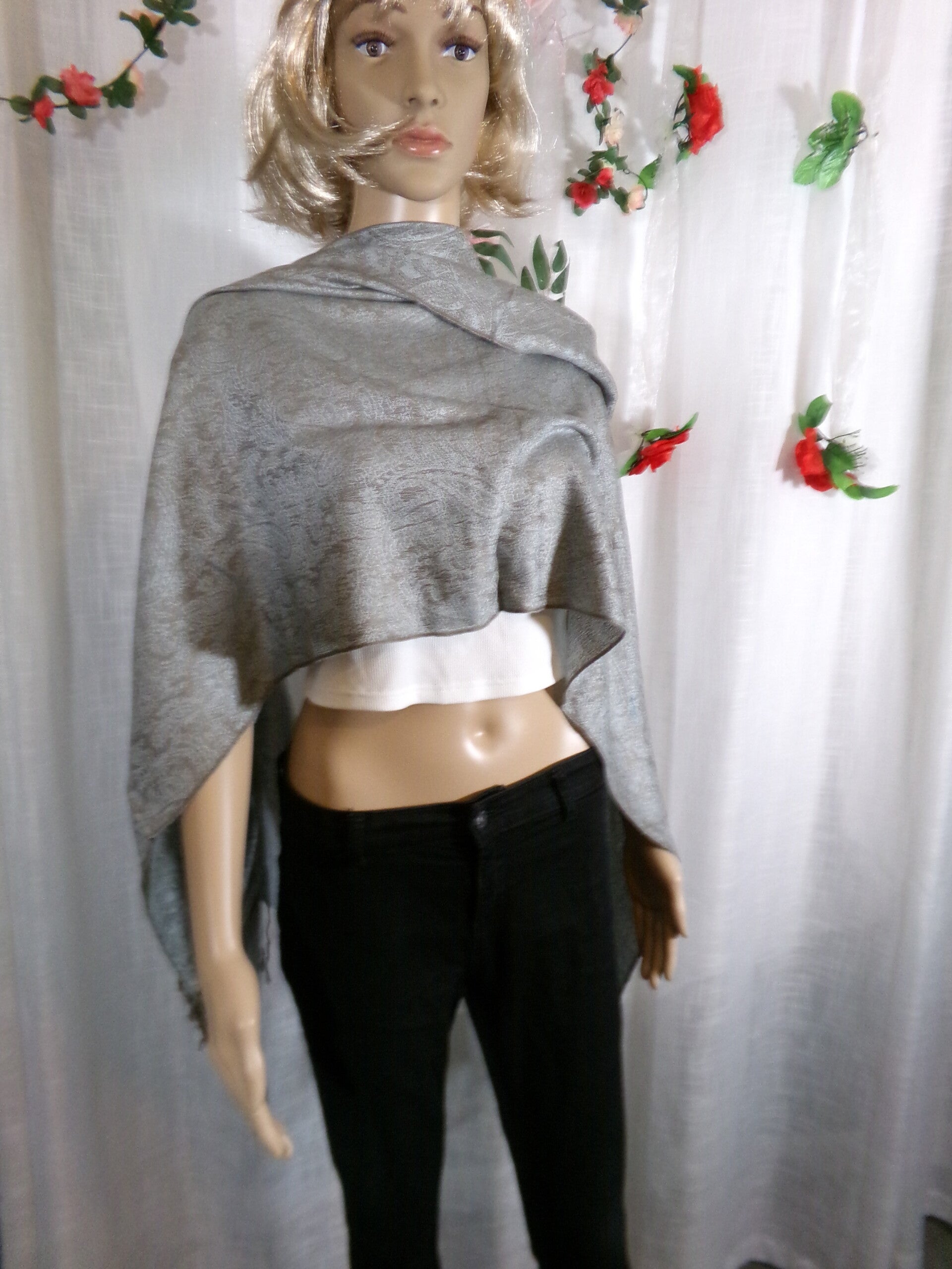 Echarpe Rectangle Cachemir, deux faces différentes, un vrai bijou de beauté ! Avec franges marron très subtiles qui fait un plus encore plus magnifique !