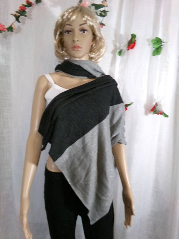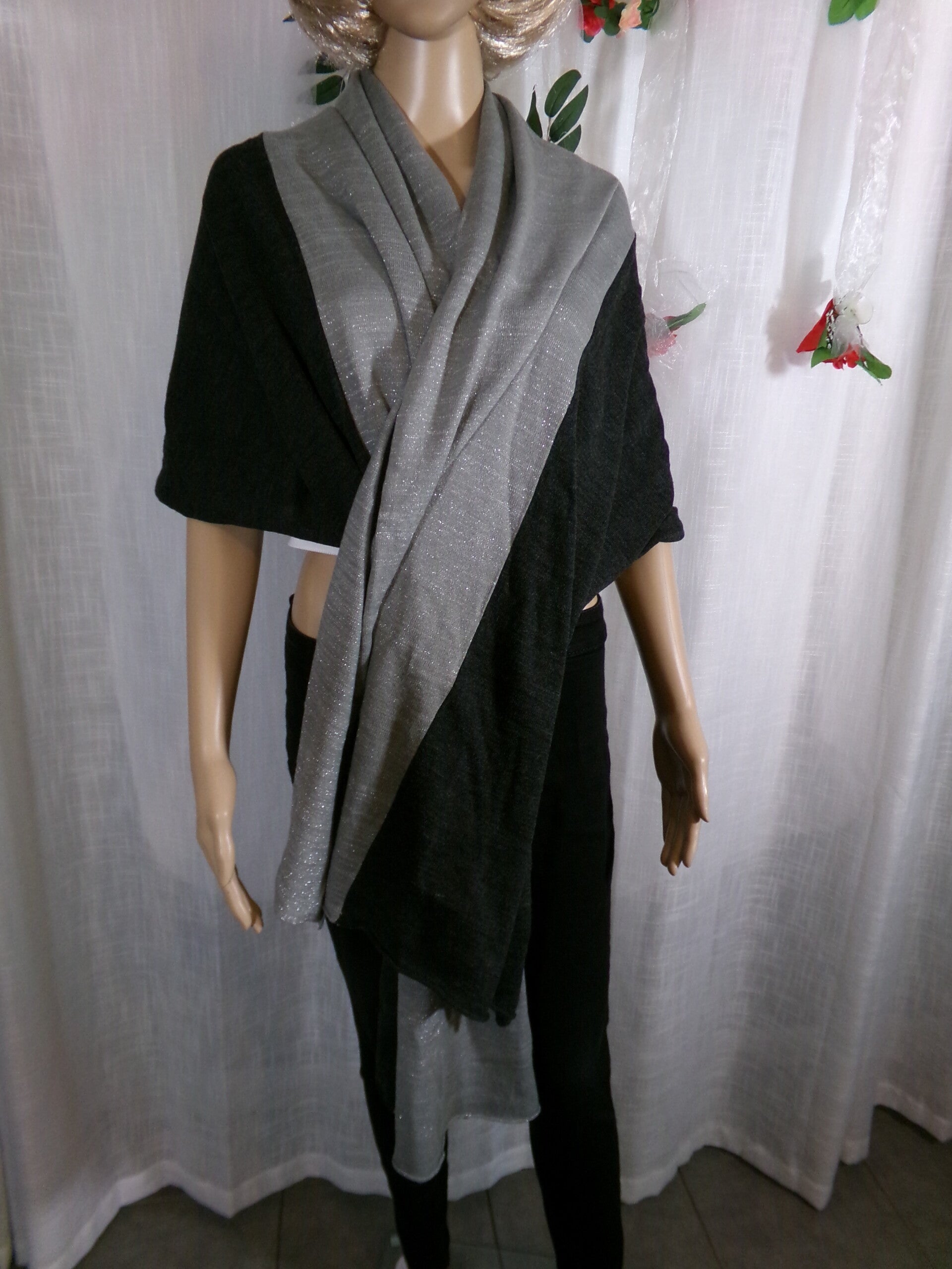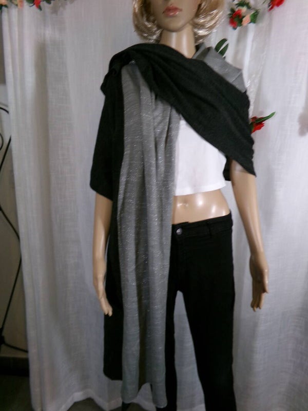 Grande Echarpe Rectangle Stylée Noir et Argent, très belle !