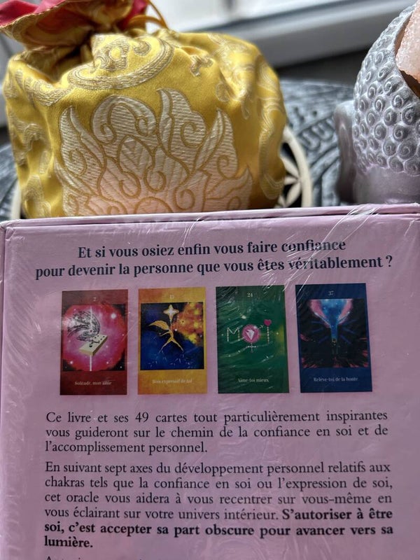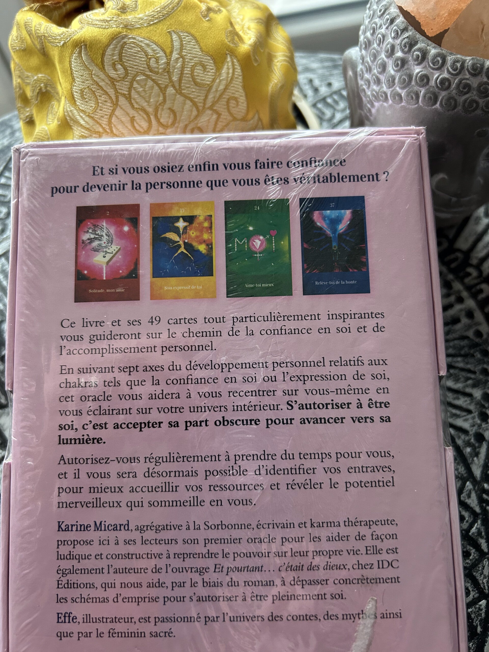 Coffret L'oracle S'AUTORISER A ETRE SOI, Oracle pour se découvrir par les chakras par KARINE MICARD, Agrégative à la Sorbonne, écrivain et karma thérapeute, propose son premier oracle, Illustrations EFFE, passionné par l'univers des comptes