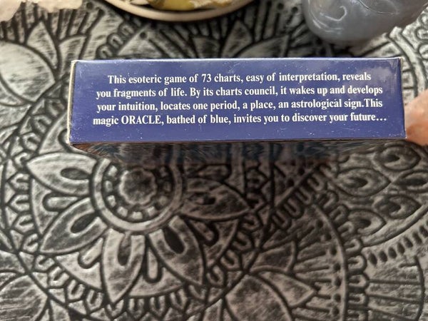 Jeu divinatoire. Cet oracle magique, baigné de bleu, vous invite à découvrir un monde, celui de votre futur.