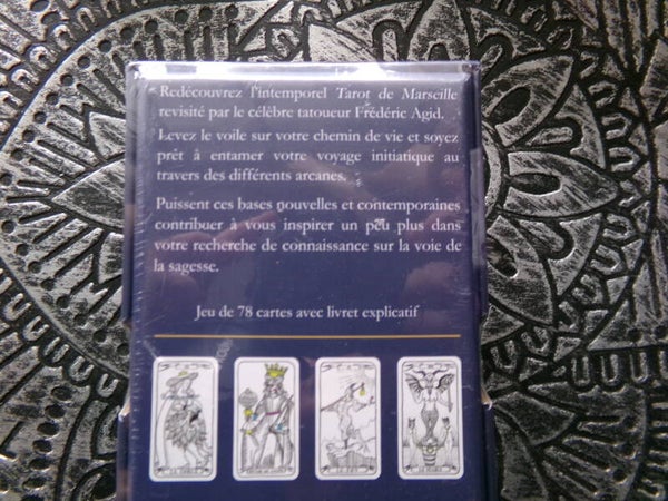 Le Tarot de Marseille revisité par Frédéric Agid est un superbe jeu de 78 cartes inspiré du Tarot de Marseille. Réalisé par le célèbre tatoueur Frédéric Agid, cet artiste dessinateur est fasciné par la symbolique des formes et des couleurs. Dans ce jeu, il nous invite à étayer nos perceptions en nous offrant une imagerie nouvelle et contemporaine du célèbre Tarot.