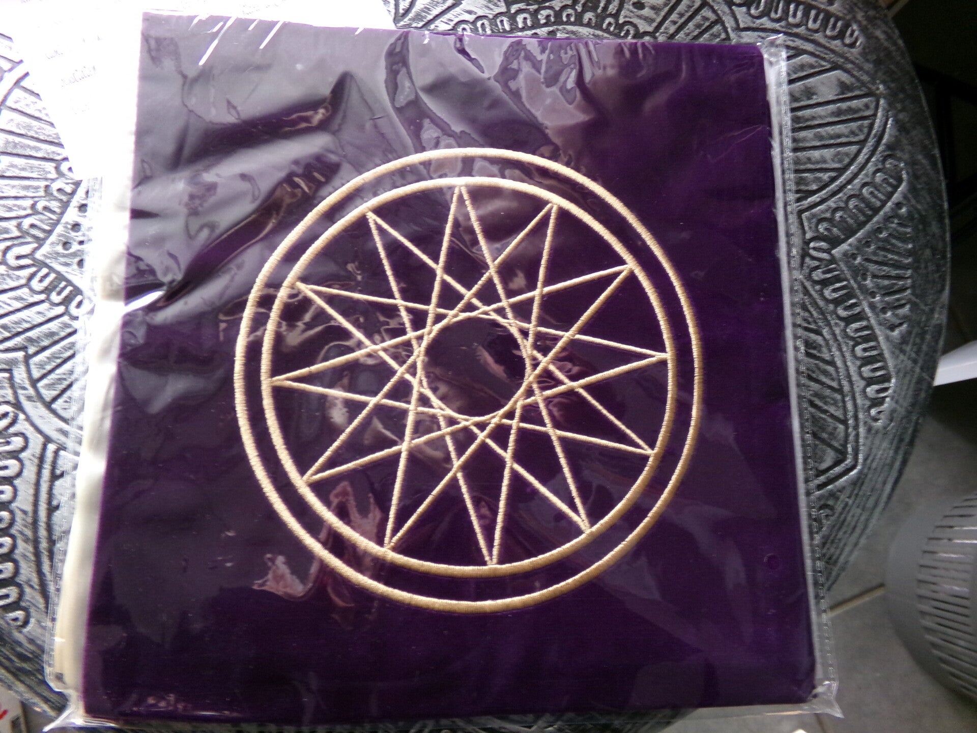 Tapis de guidance VIOLET 80X80 cm avec le symbole brodé or, velouté.