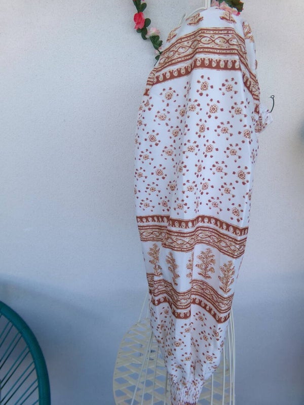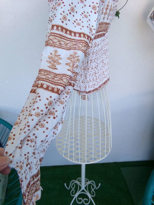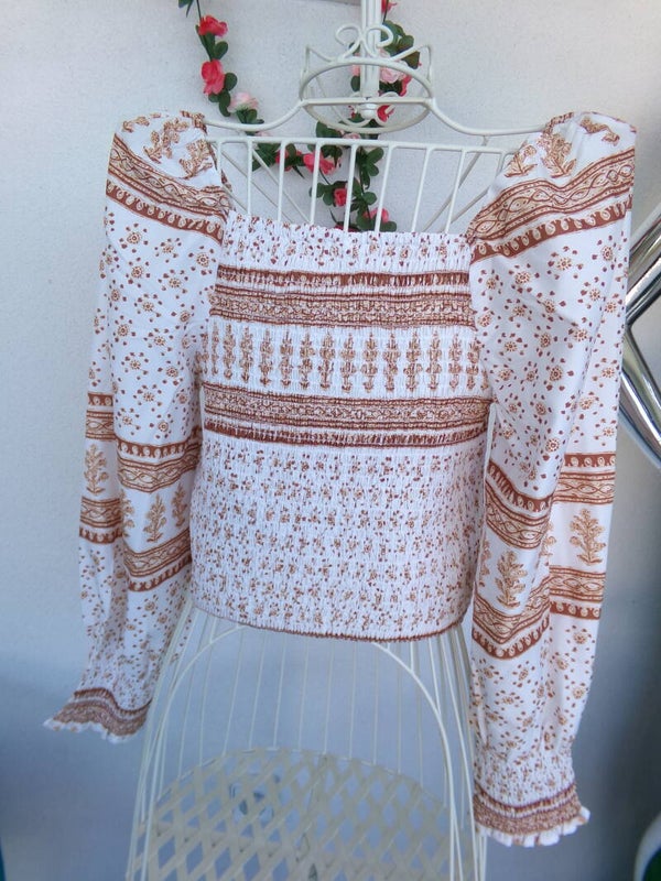 Haut court smoke manches longues Blanc et marron glacé Taille M