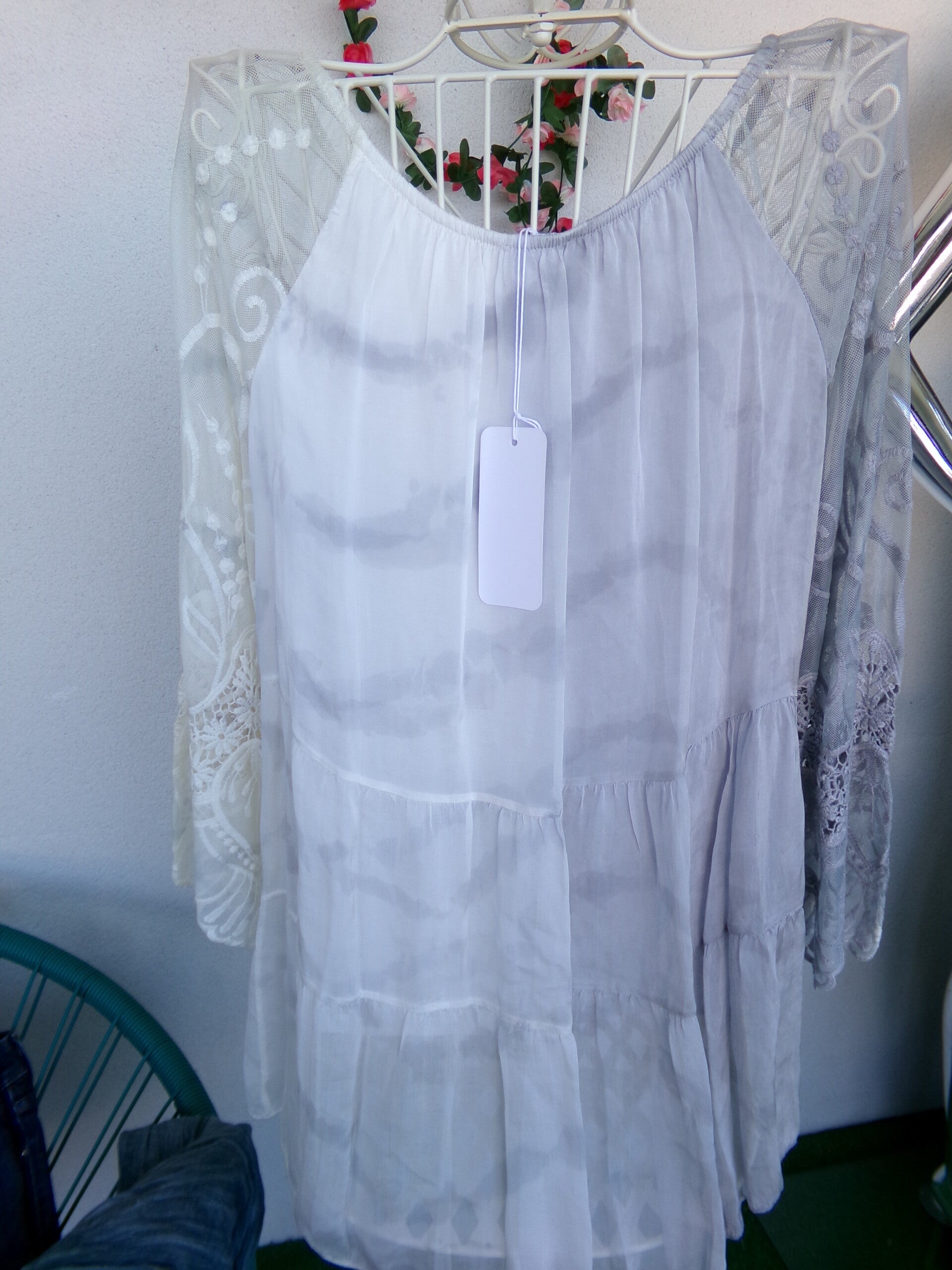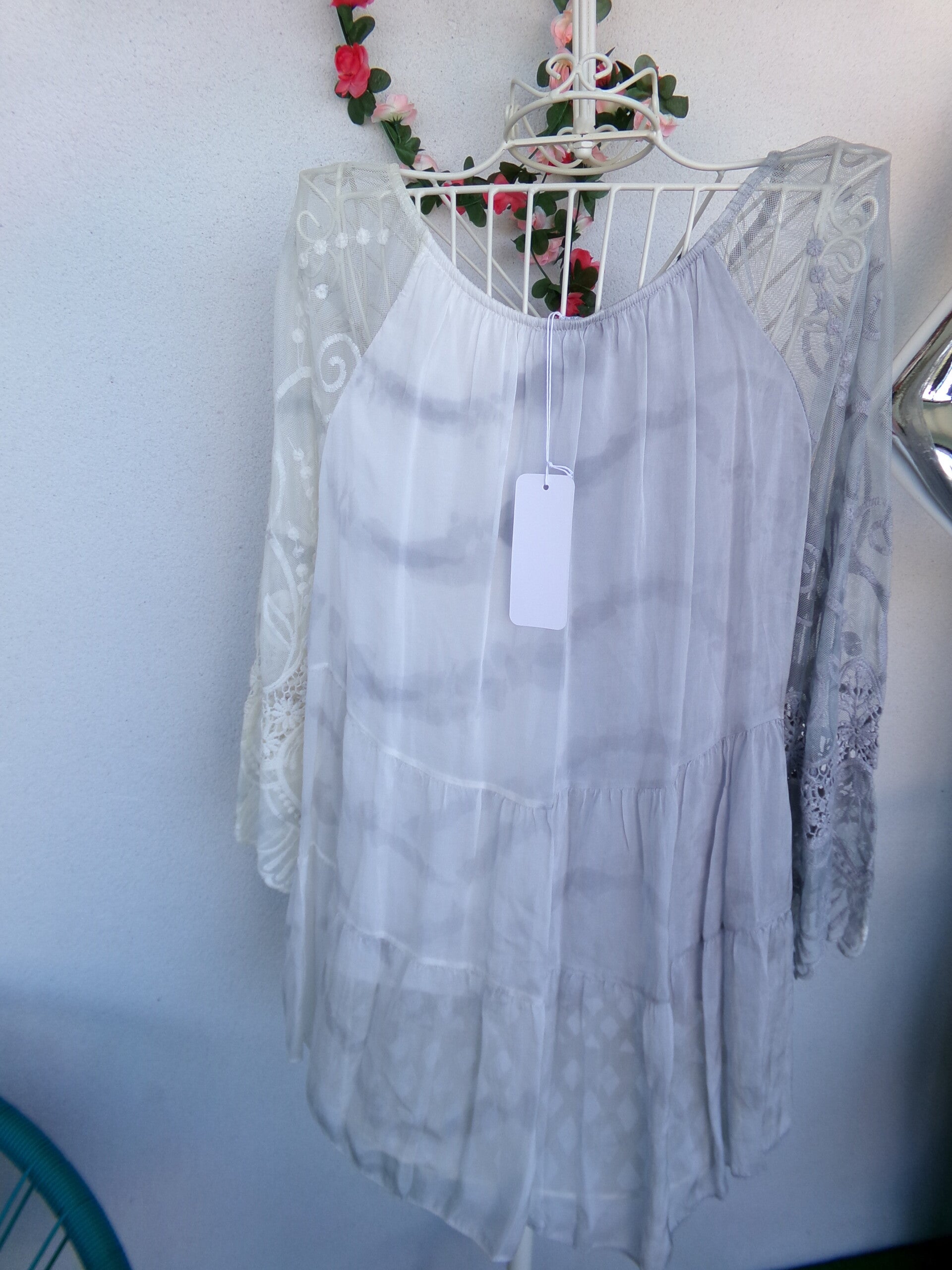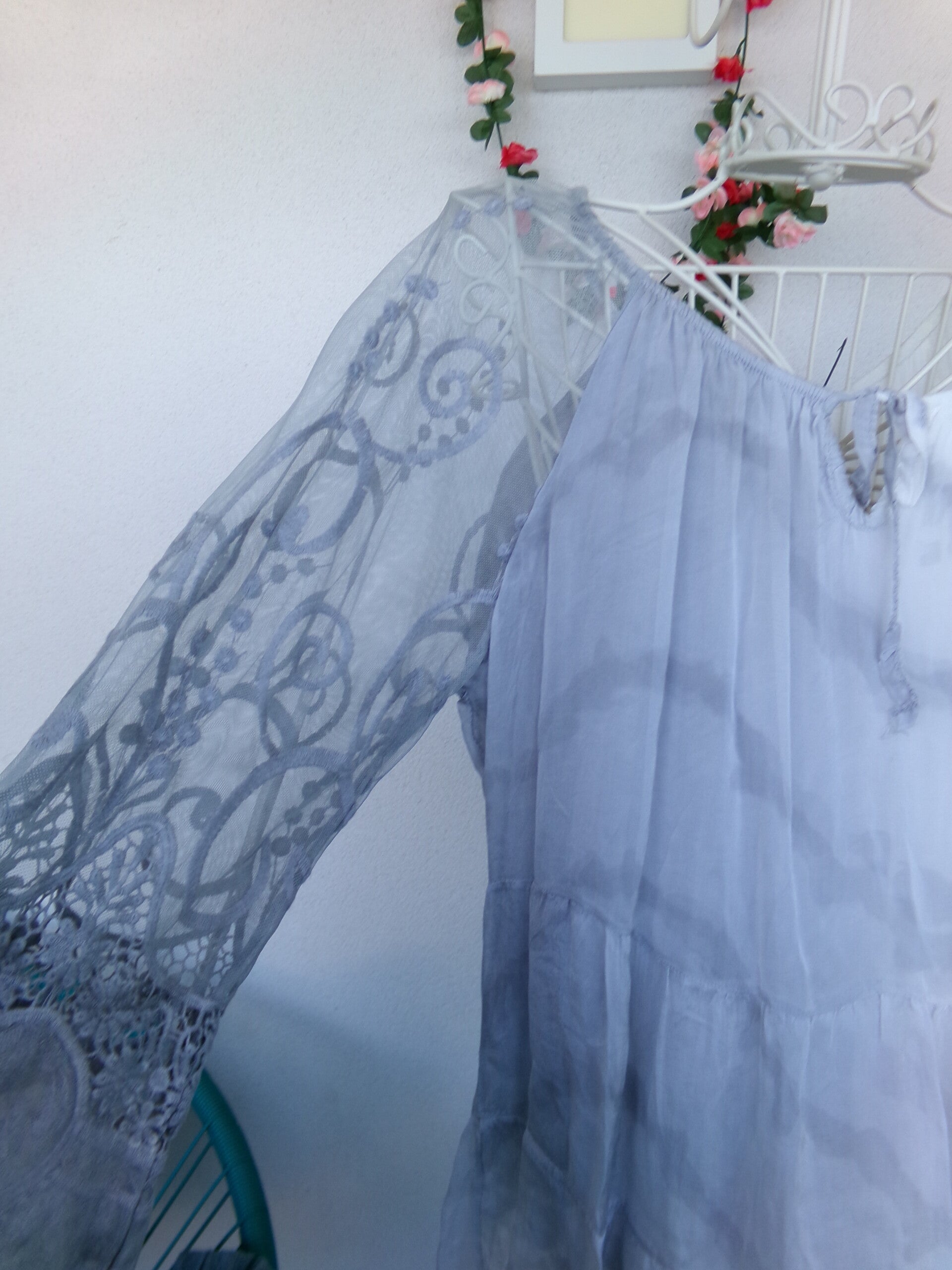 Haut long Manches Longues évasées, col rond élasthane, entièremenent doublé, voilage par dessus, très léger, magnifique et unique !