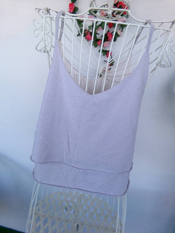 Haut court à bretelles Champagne à paillettes très fines Collection PIMKIE Taille S