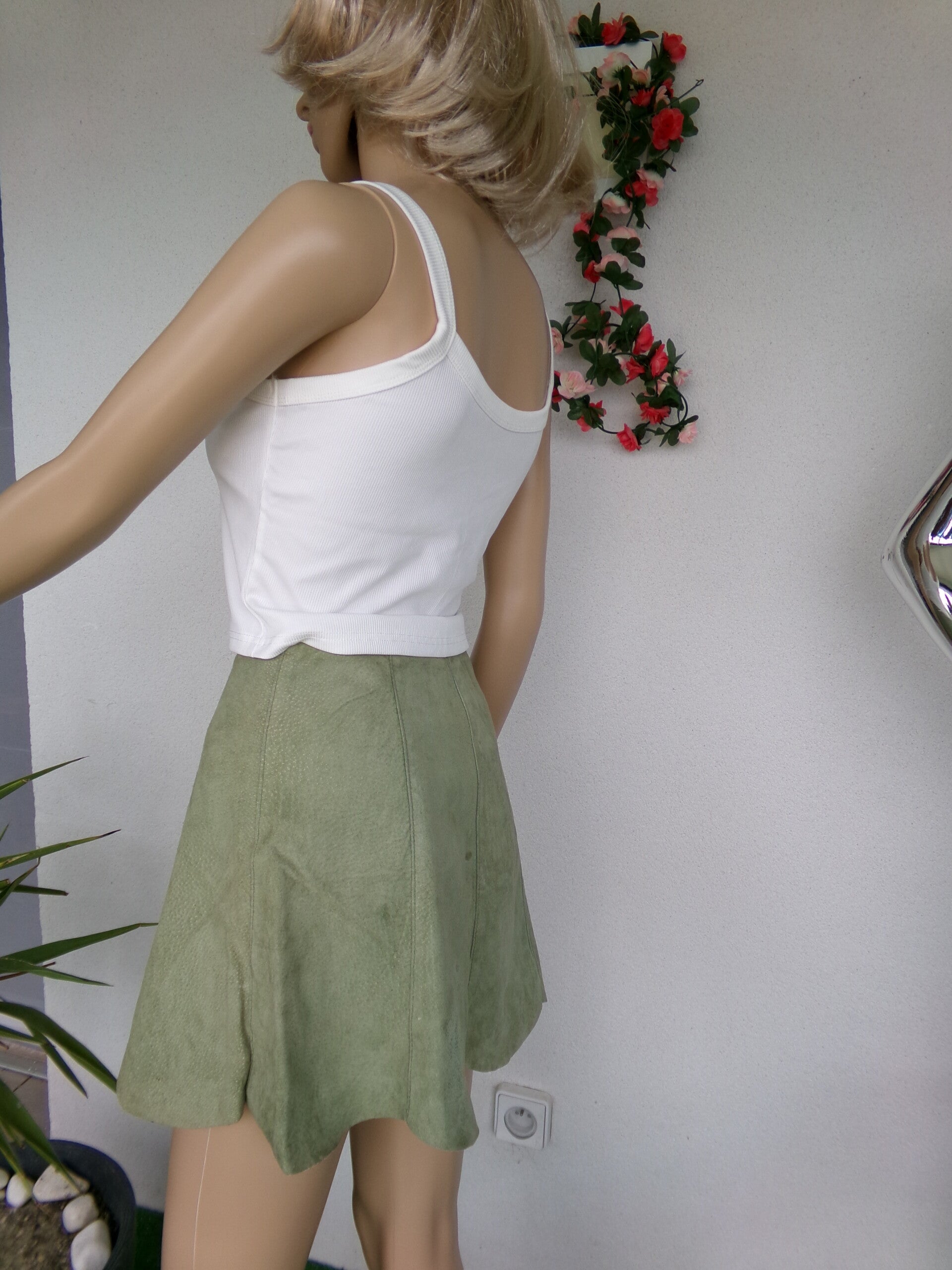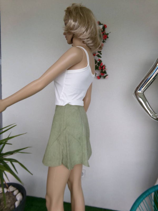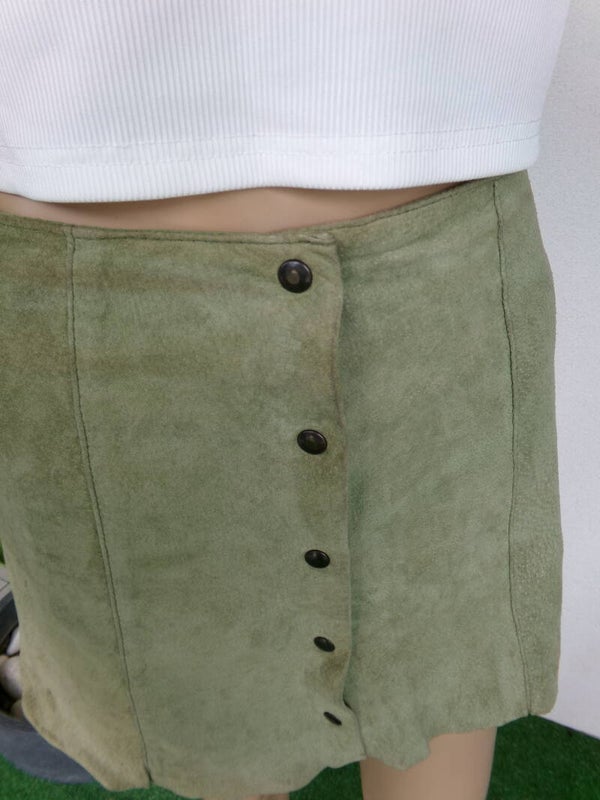 Jupe en daim véritable doublée Vert Verduron Taille 36, bas original arrondi, modèle unique !