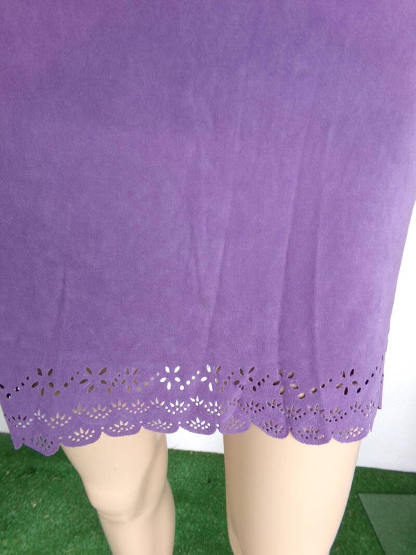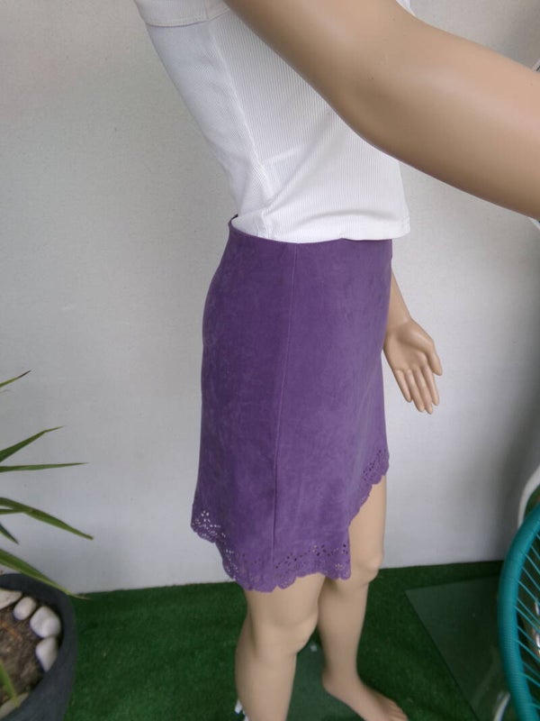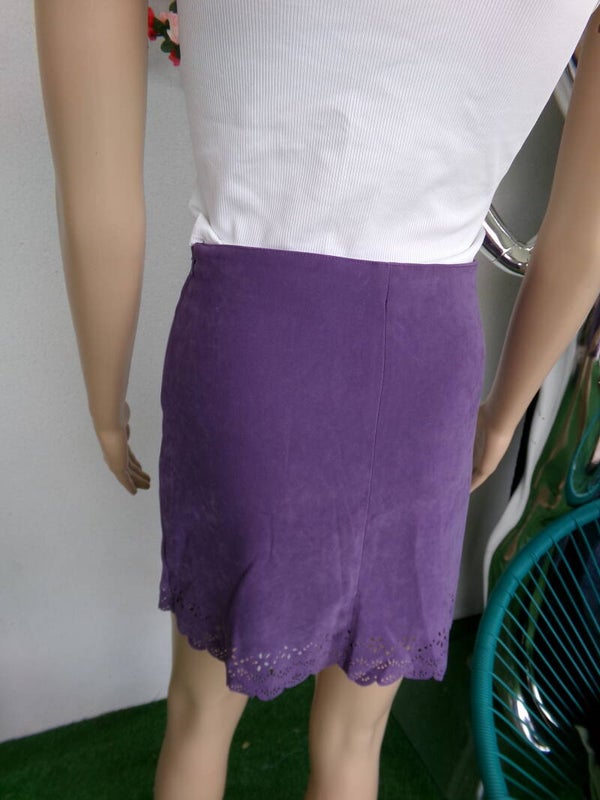 Jupe suédine coupe droite mi-courte mauve à motifs au bas ajouré MIM Taille 36