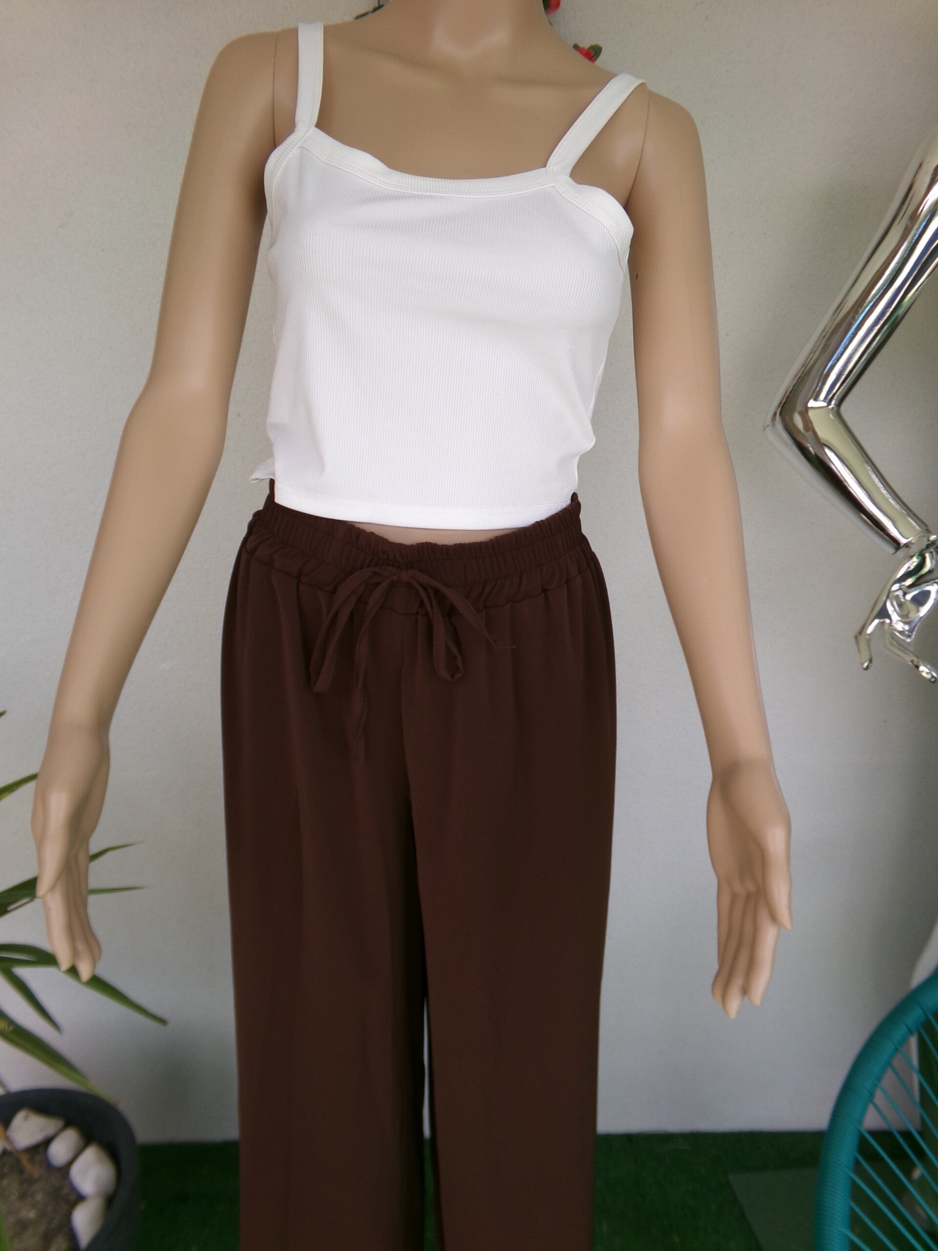 Pantalon large Marron Foncé Taille Unique Viscose Elasthane MADE IN ITALY
