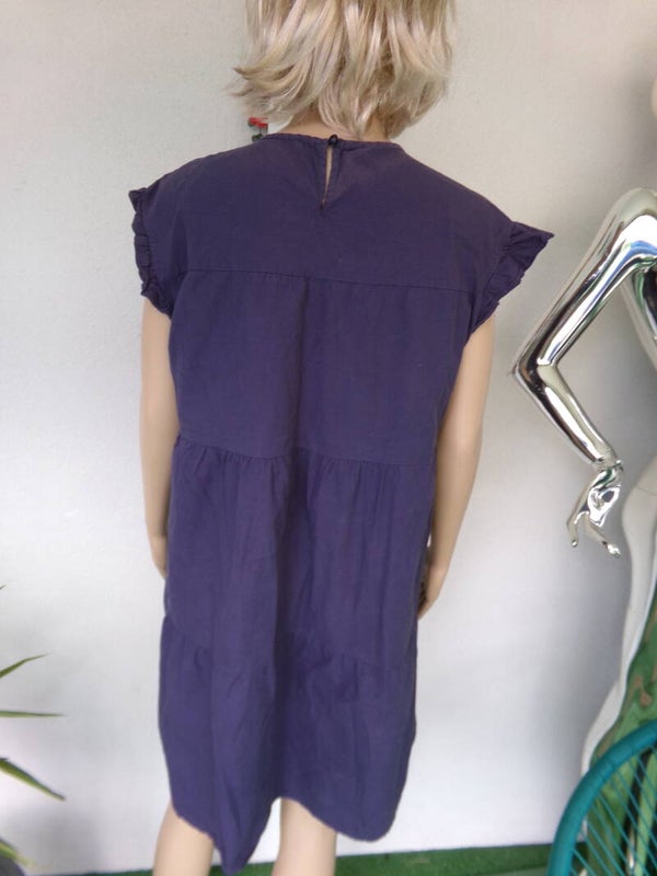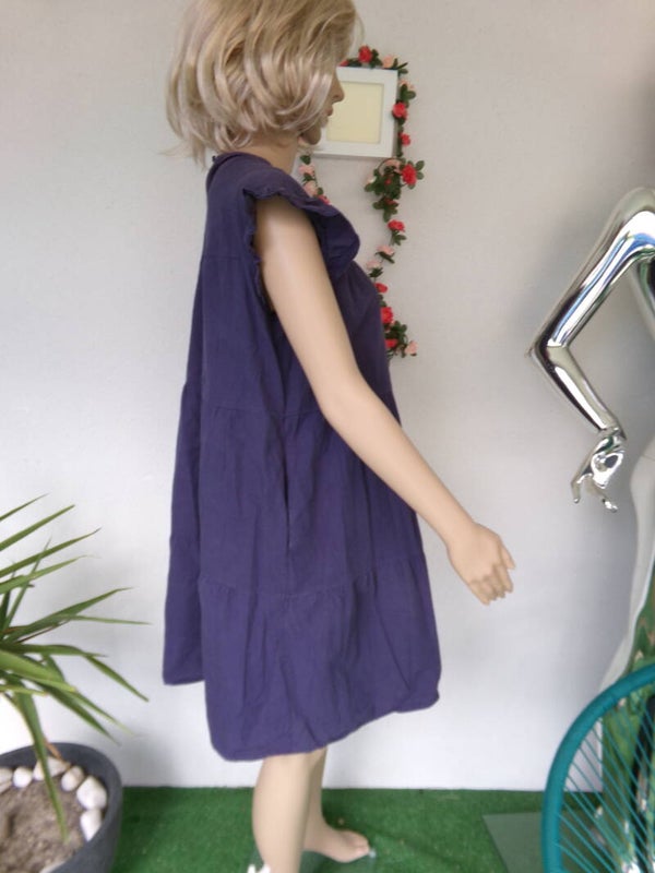Robe originale évasée, petite manchette, évasée en coton, très lègère, poches latérales, mignone à souhait !