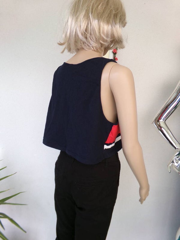 Haut sans manches DIVIDED H&M, original, bleu marine et rouge, blanc, il est adorable, court et joli comme un coeur !