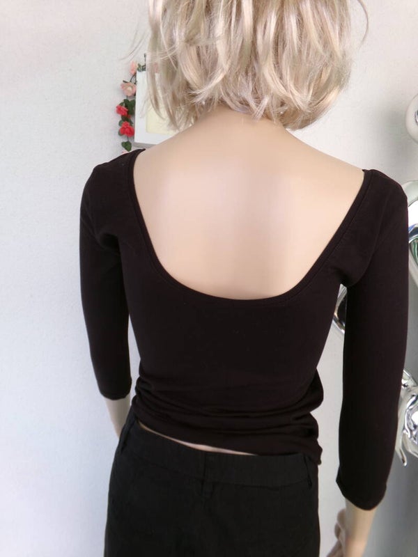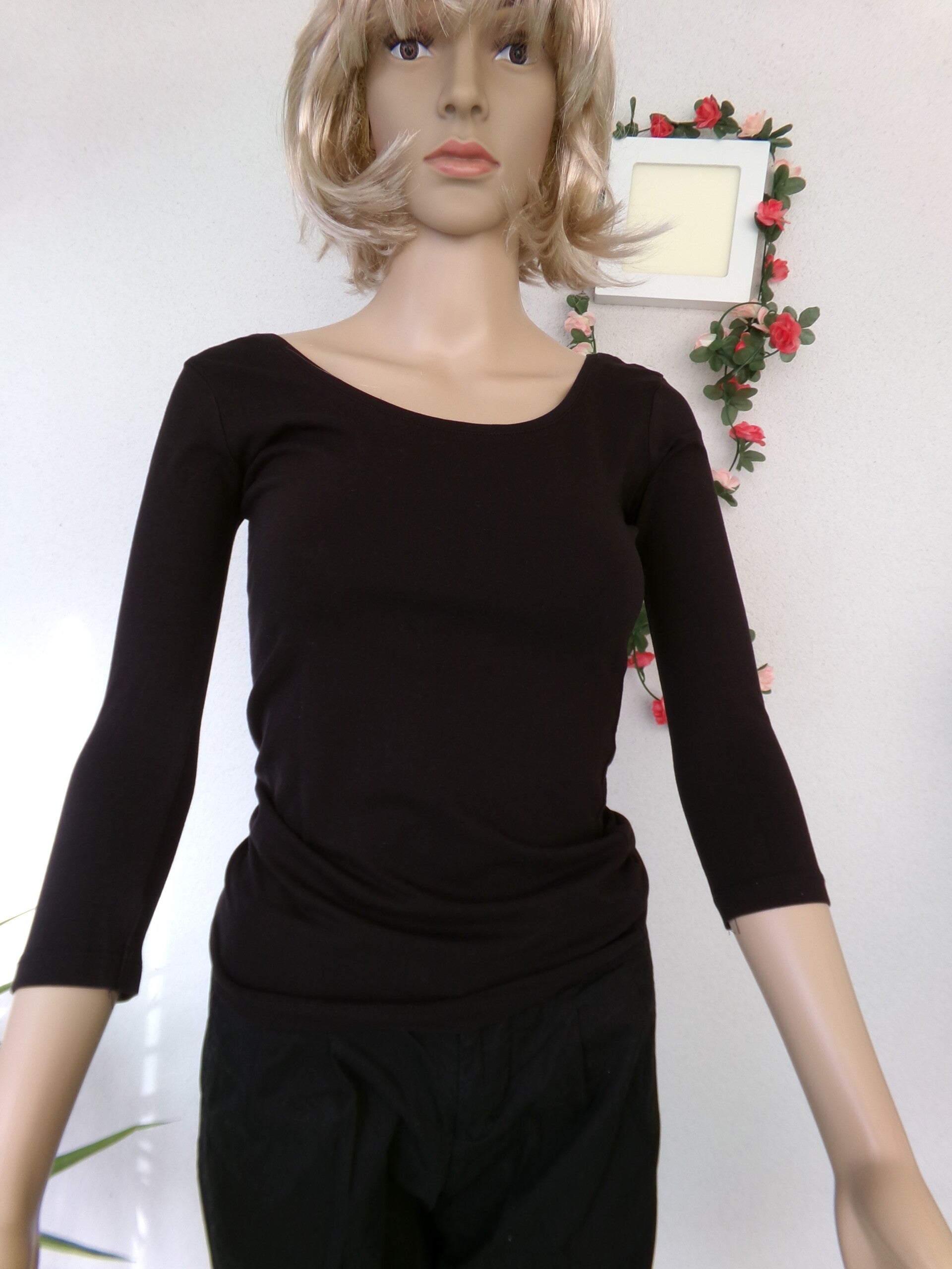 Tee Shirt Noir, manches longues, col rond évasé dans le dos, léger, portez le à votre guise, vous serez magnifique !