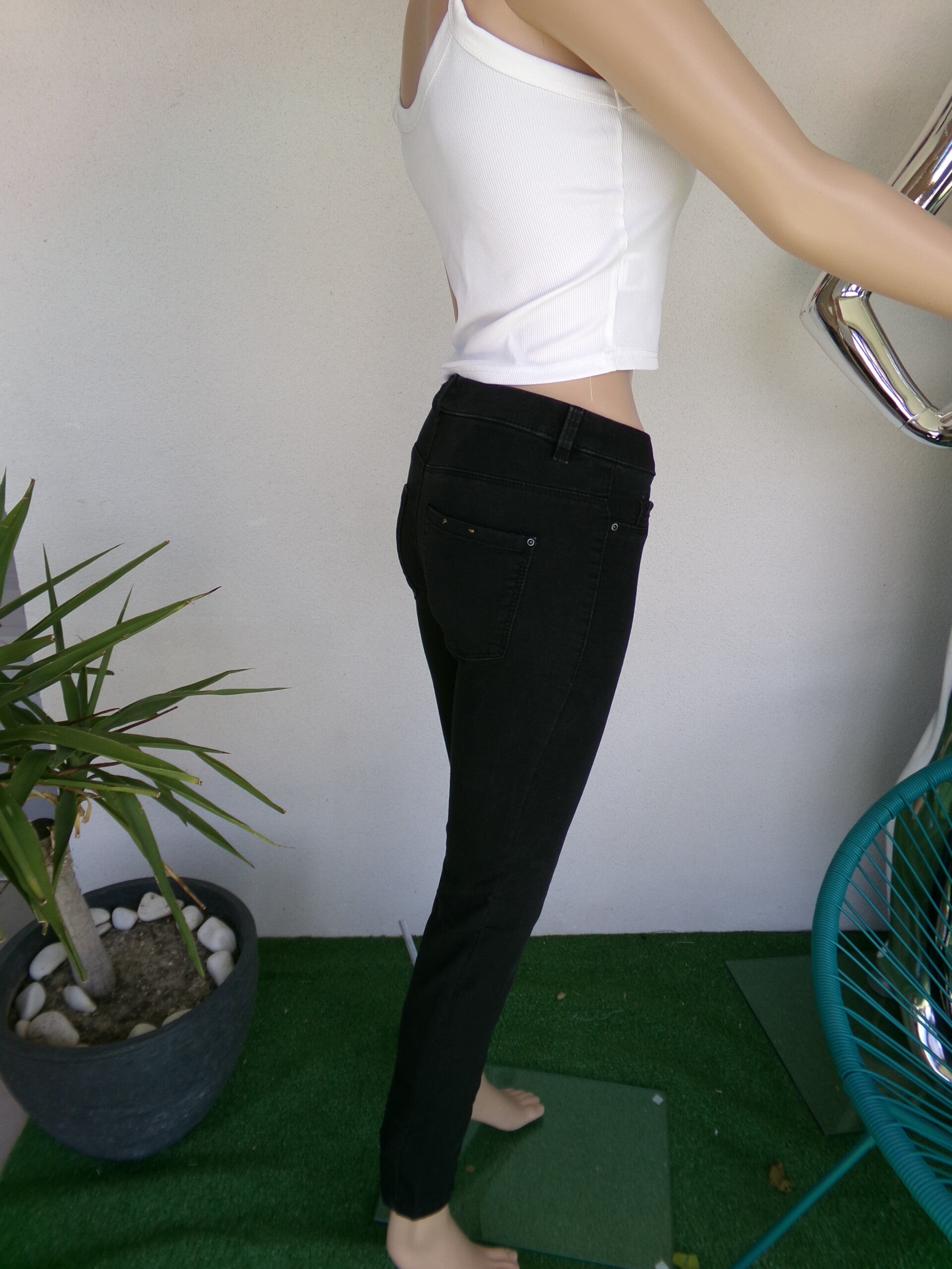 JEAN extensible Noir sans fermeture PULL&BEAR Basic Collection TAILLE 32