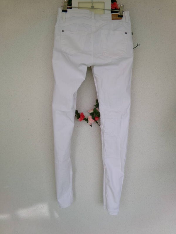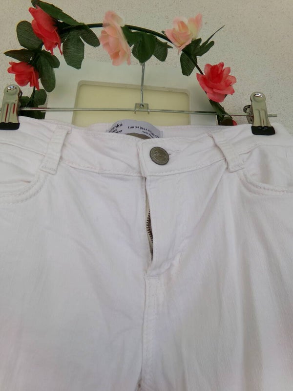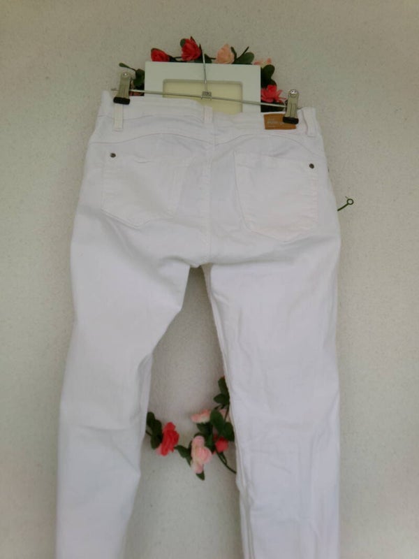 JEAN CROPPED Blanc Troué, fermeture et bouton, magnifique.