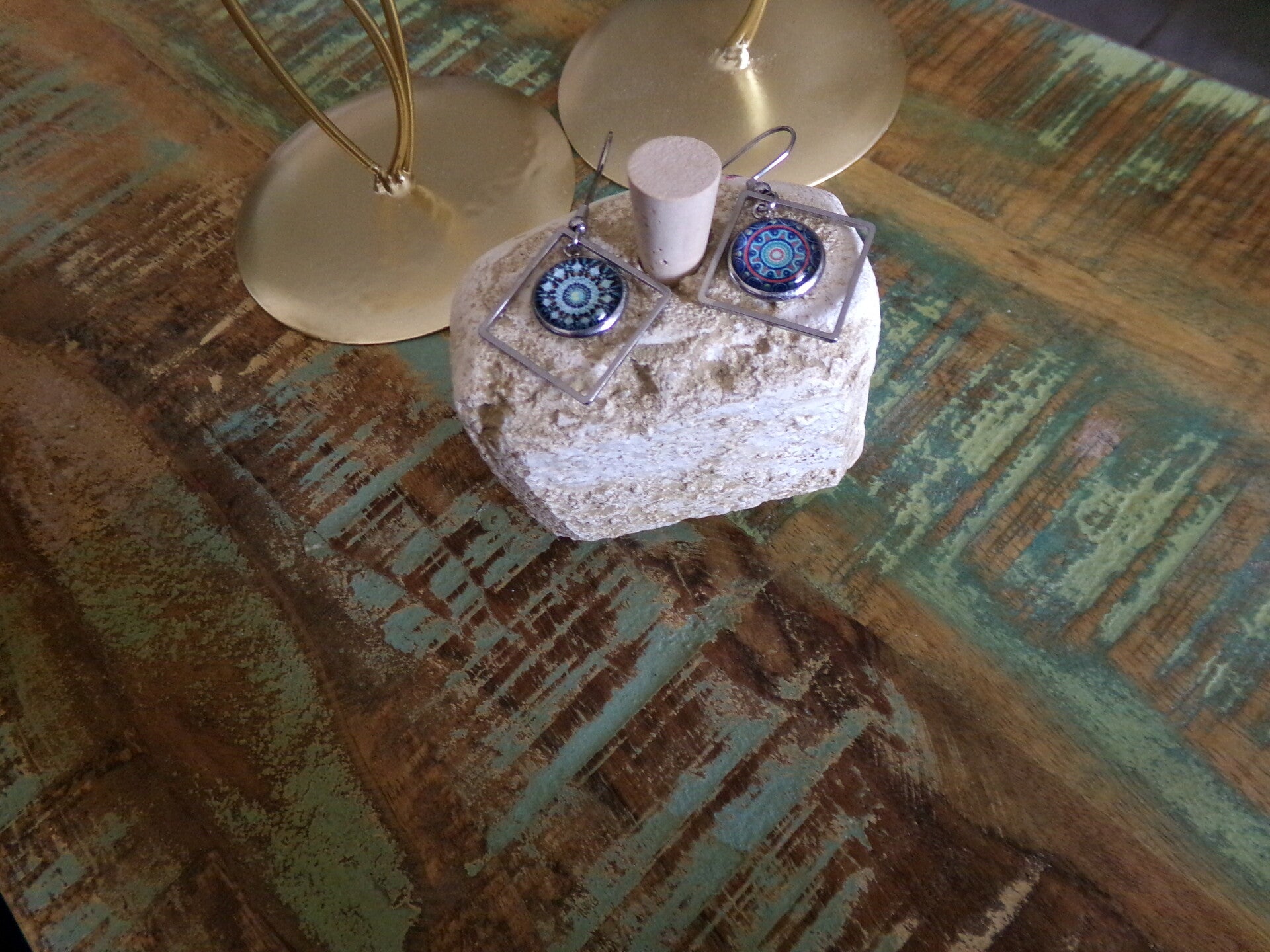 Boucles d'oreilles Carrées, branchées, décalées, Fait main