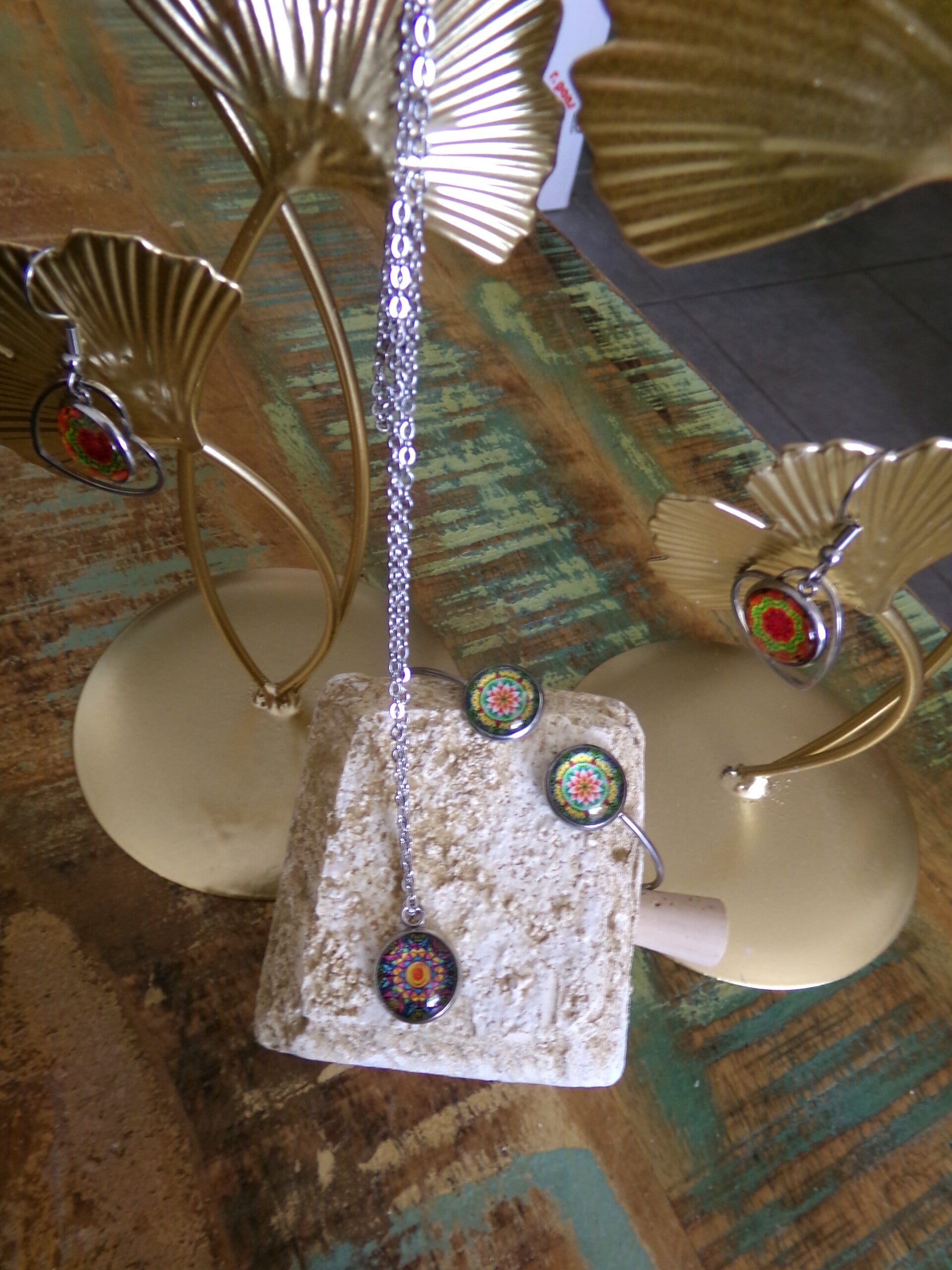 PARURE B Collier Bracelet Boucles d'oreilles branchés, décalés, Fait main UNIK