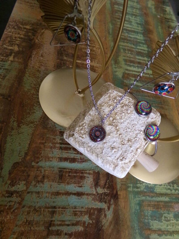 PARURE J Collier, Bracelet, Boucles d'oreilles, branchés, décalés, UNIK Fait main