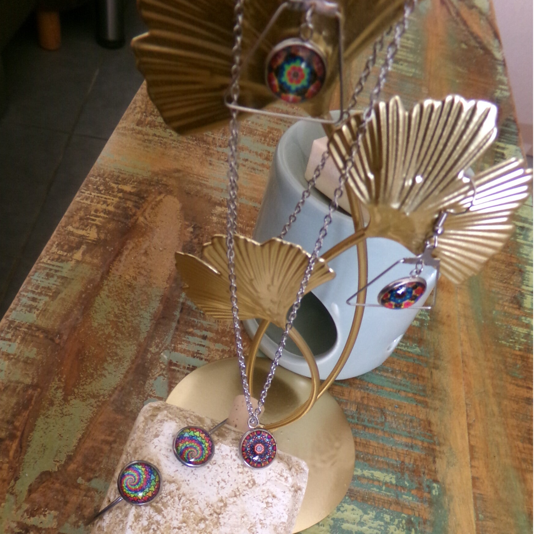 PARURE S Collier, Bracelet, Boucles d'oreilles, branchés, décalés, UNIK Fait main