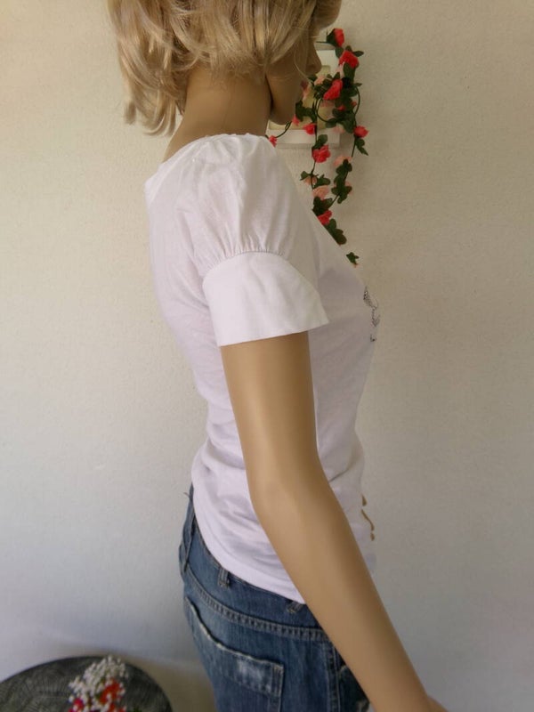 Tee Shirt Blanc GUESS en perle argent Taille 36/38