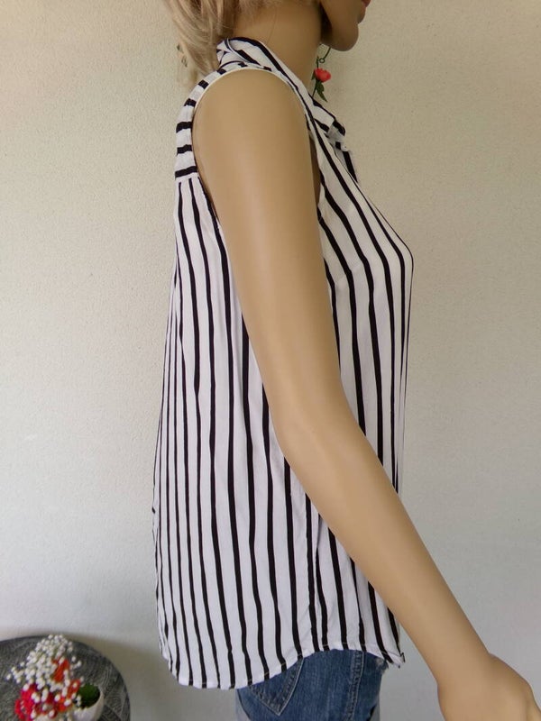 Chemise Tunique Fluide sans manche noir et blanc à lignes, qui allonge la ligne, peut se porter de différentes manières à votre guise, vous serez la plus jolie !