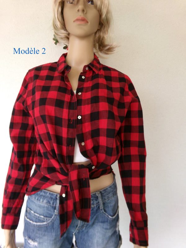 Modèle 2 Chemise à grands carreaux Noir et Rouge TAILLE S