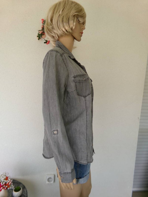 Chemise Jean Gris Fermeture pression CAMAÏEU Taille 36