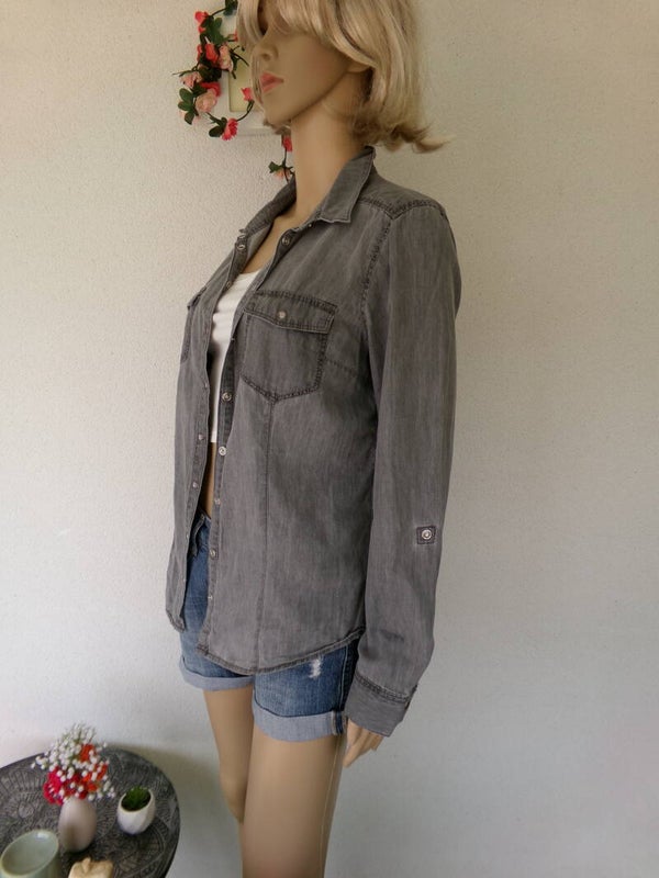 Chemise Jean Gris, fermeture à pression, très jolie pour votre bonheur d'être belle !