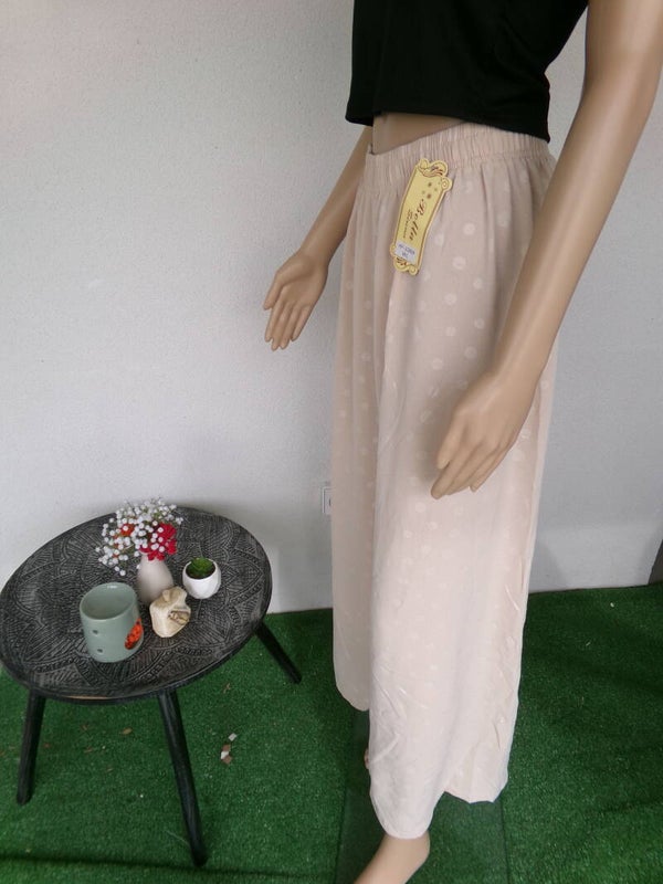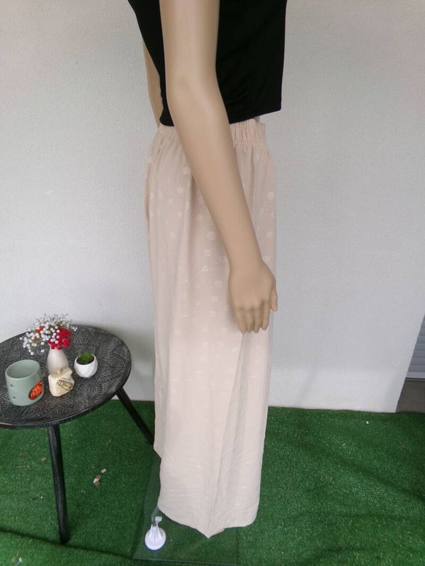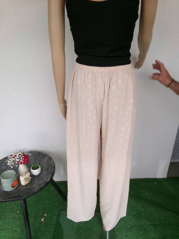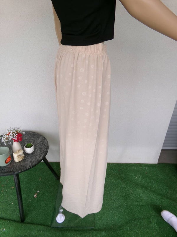 Pantalon belge à poids discrets, ce qui fait son originalité, très joli, beige, très fluide, fait très stylé, coupe large, vous serez magnifiquement belle dans ce petit bijou !